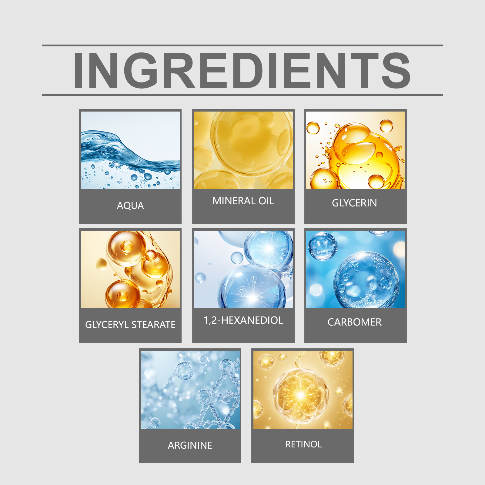 Product Ingredients: Water, Glycerin, Glyceryl Glucoside, Aluminum Glyceryl Glucoside, 1,2-Hexanediol, Carbomer, Xanthan Gum, Allantoin