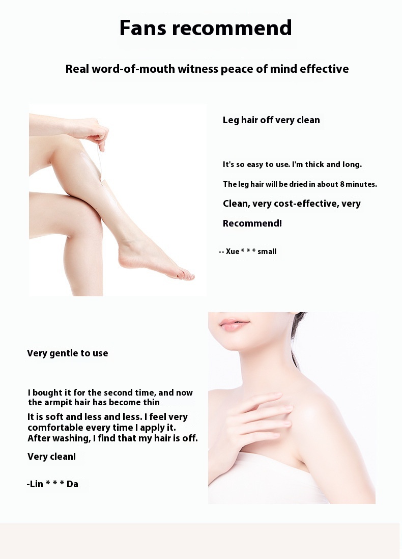 Product information:Shelf life: 2 years Net content: 60g Category: depilatory cream Raw material: Chinese herbal medicine