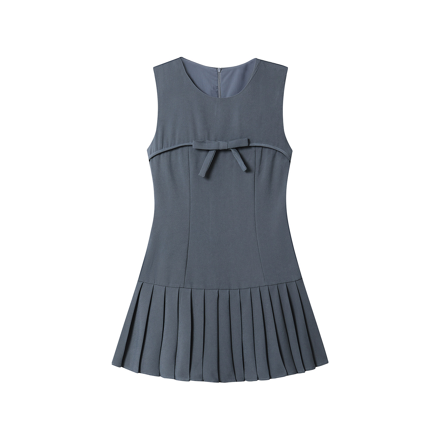 Gentle Feminine Pleated Dress With A Bow For Slimming Look