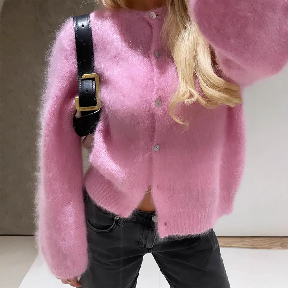 Color: round neck long sleeve short cardigan-rose red, round neck long sleeve short cardigan-beige
