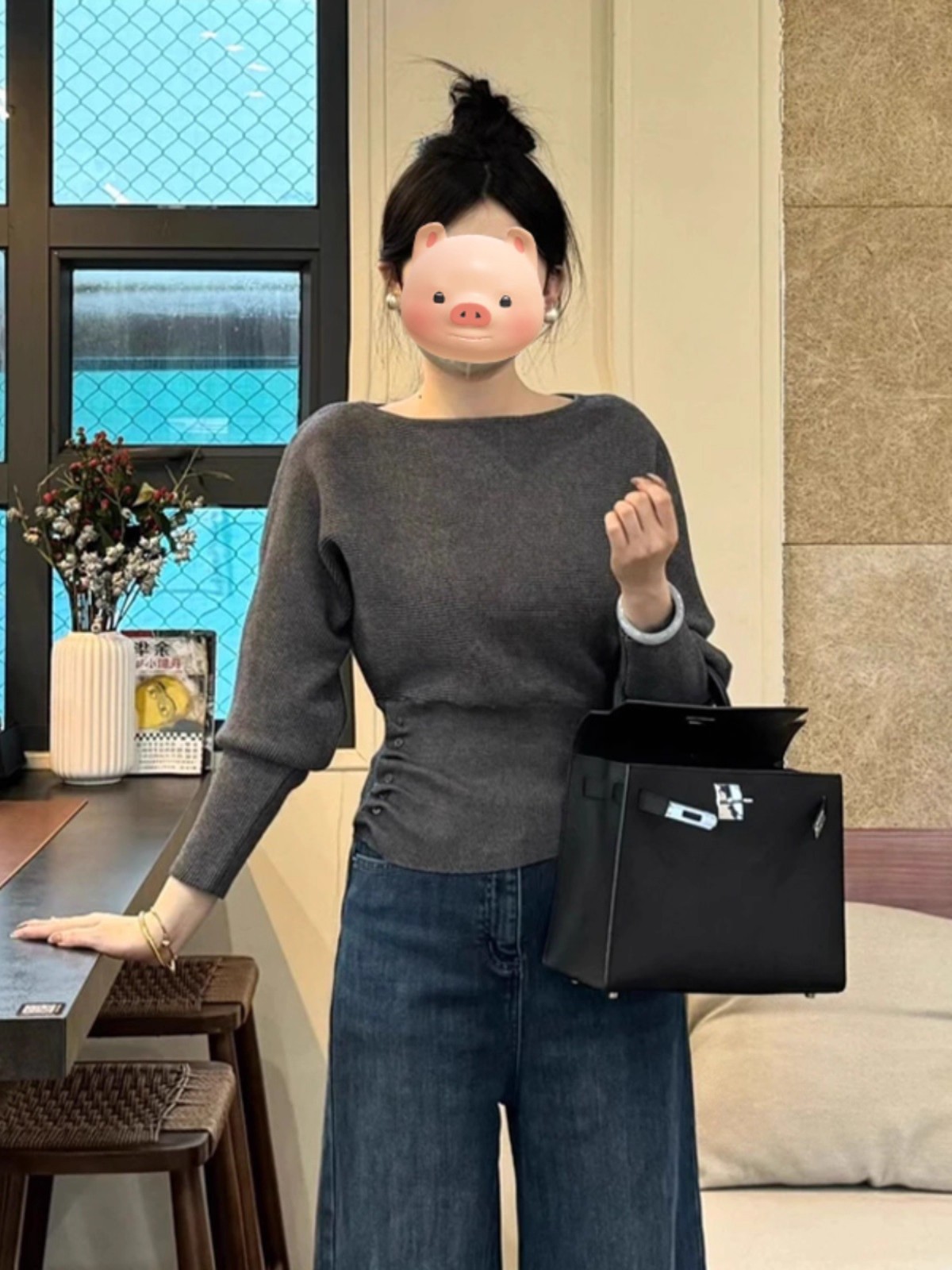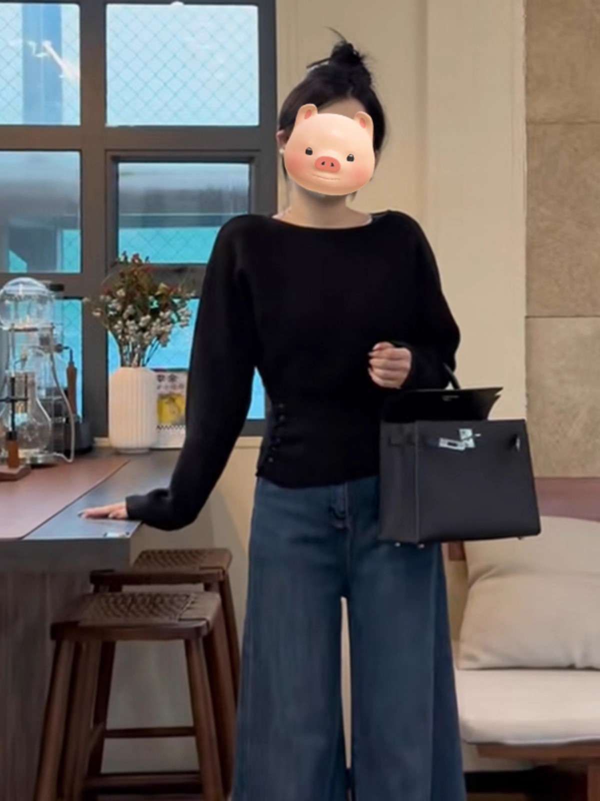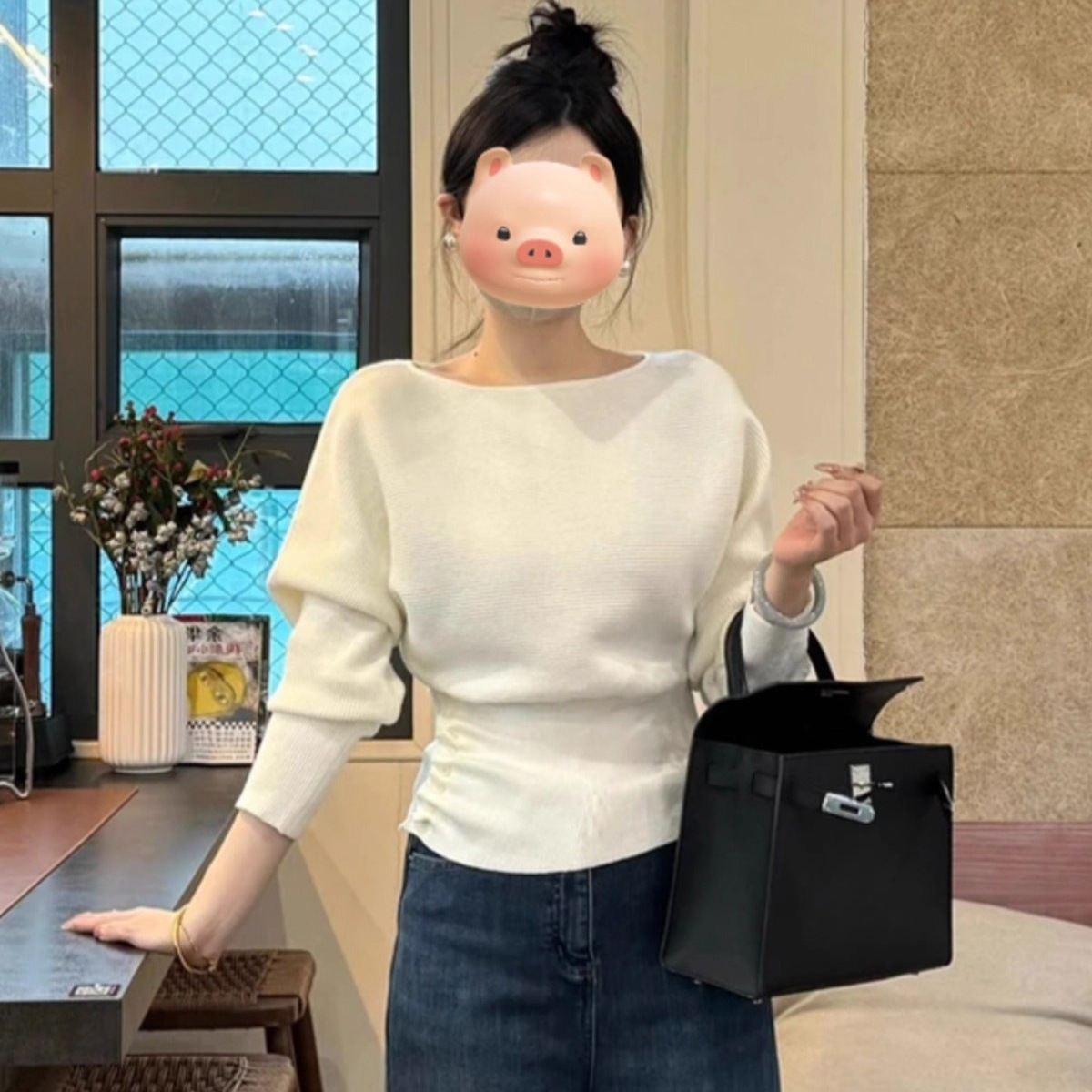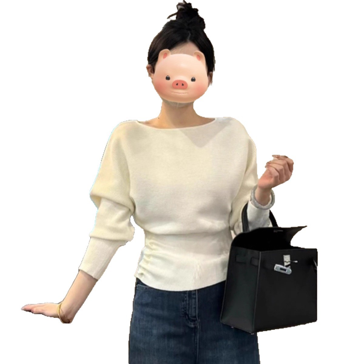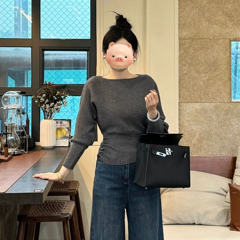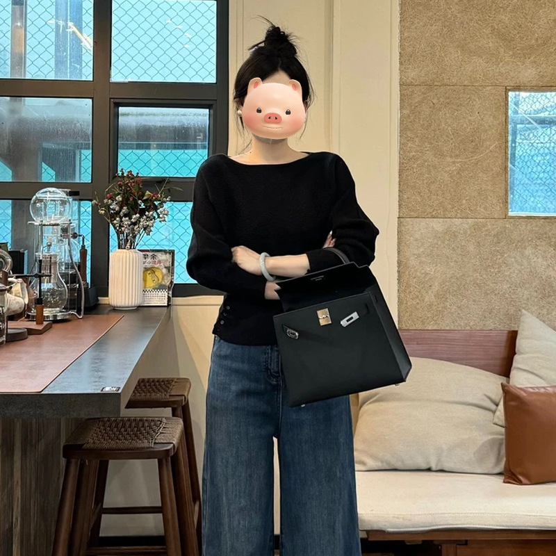 Gentle Little Fragrance Batwing Sleeve Black Knitwear