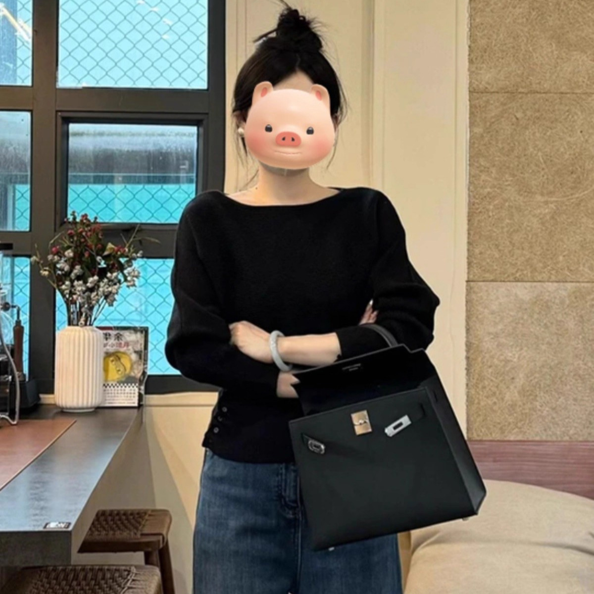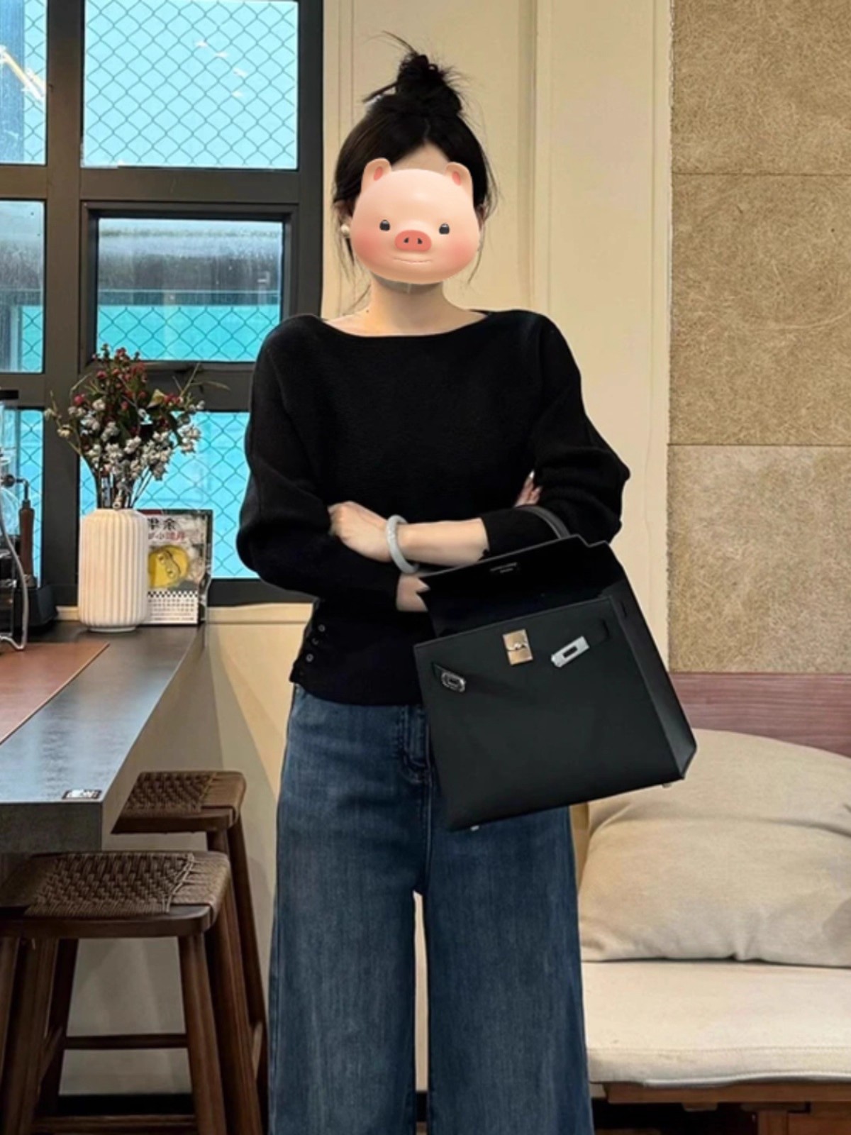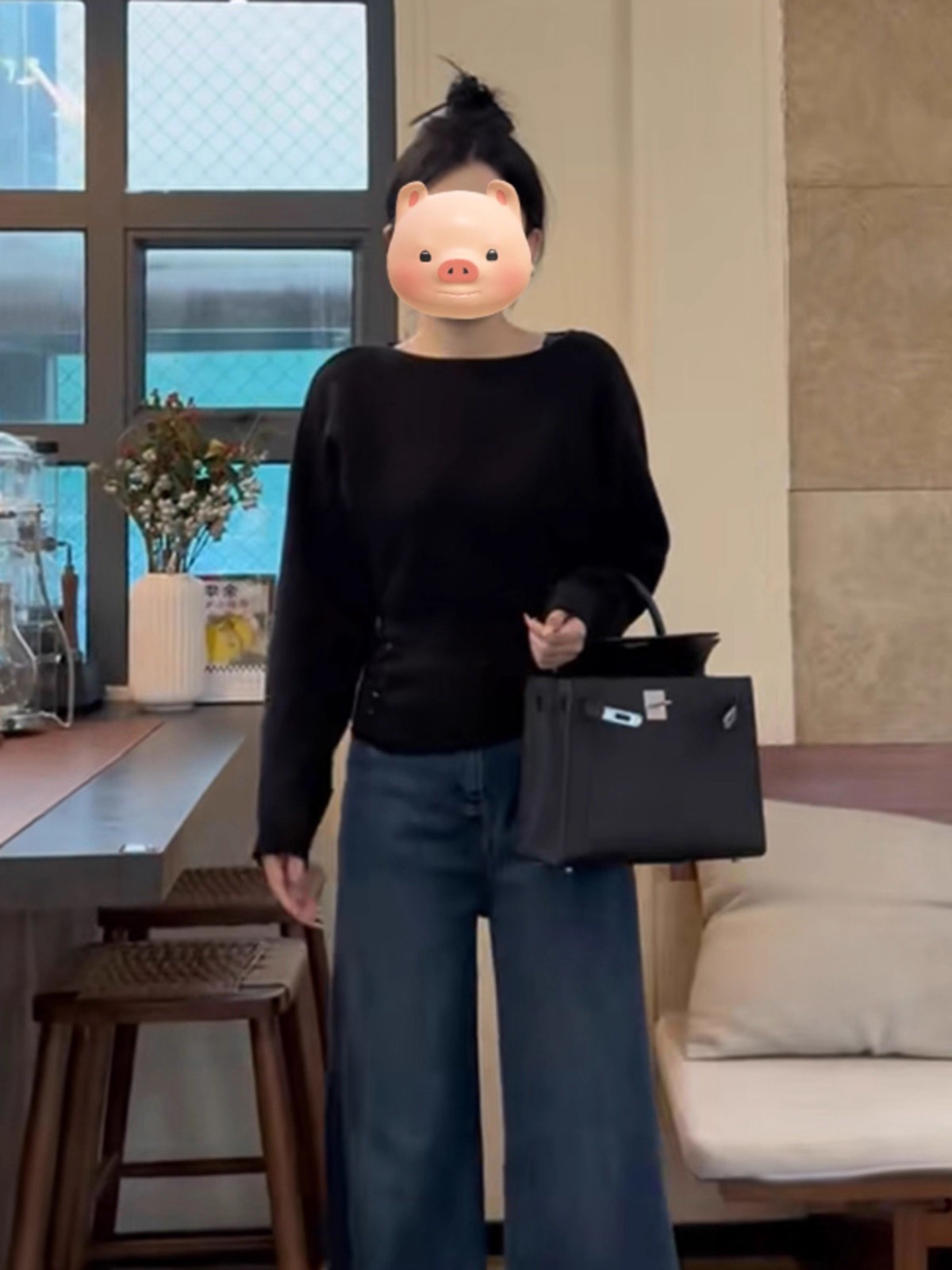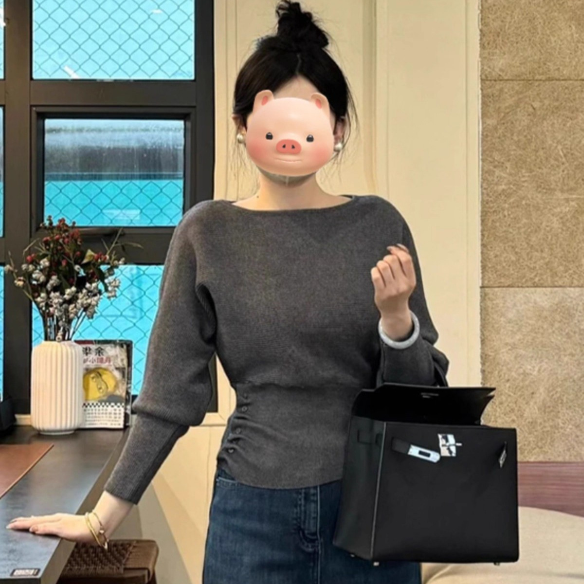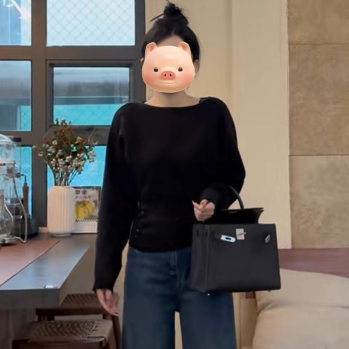 Gentle Little Fragrance Batwing Sleeve Black Knitwear