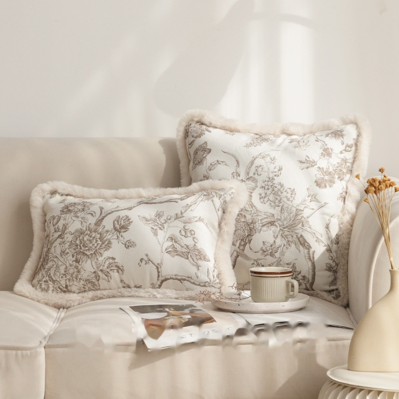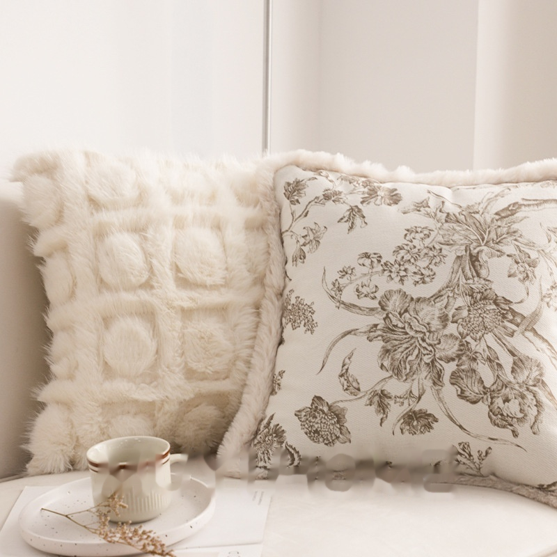Color: French printing Burr square pillow, French printing Burr waist pillow, three-dimensional round arch mink square pillow-milky white, medieval striped velvet square pillow