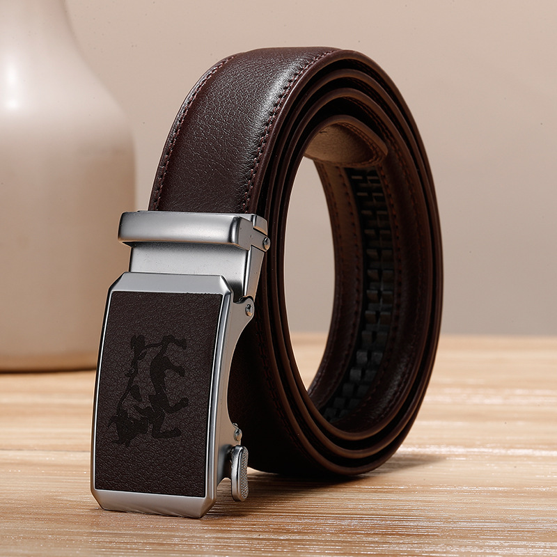 Genuine Leather Cowhide Belt With Automatic Buckle Belt