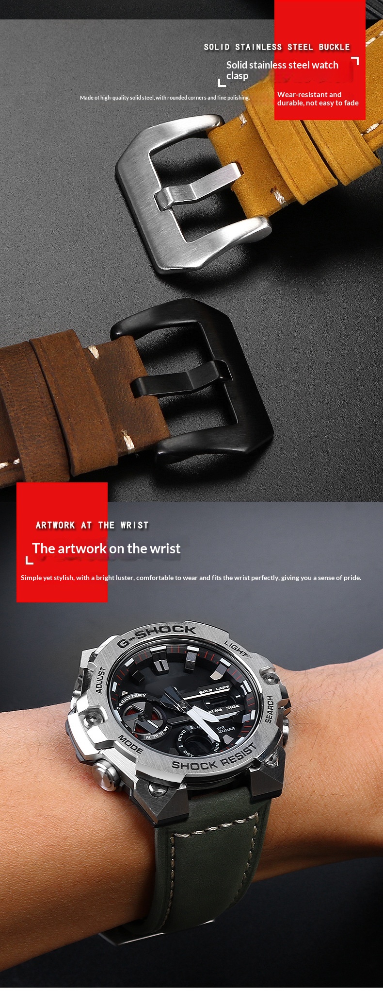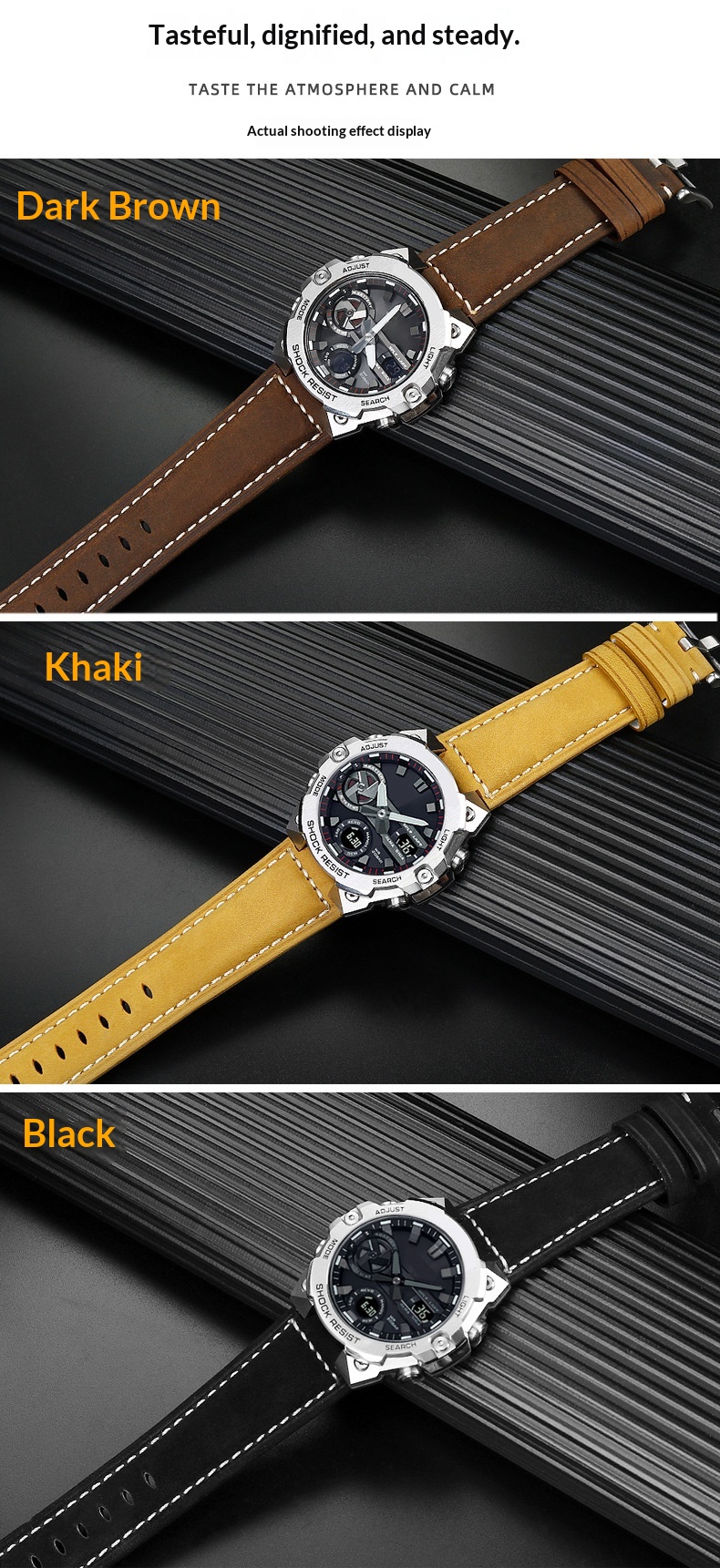 Product information:Size: 16mm lug width Strap Material: Genuine Leather Case Back: Stainless Steel Pin-Back