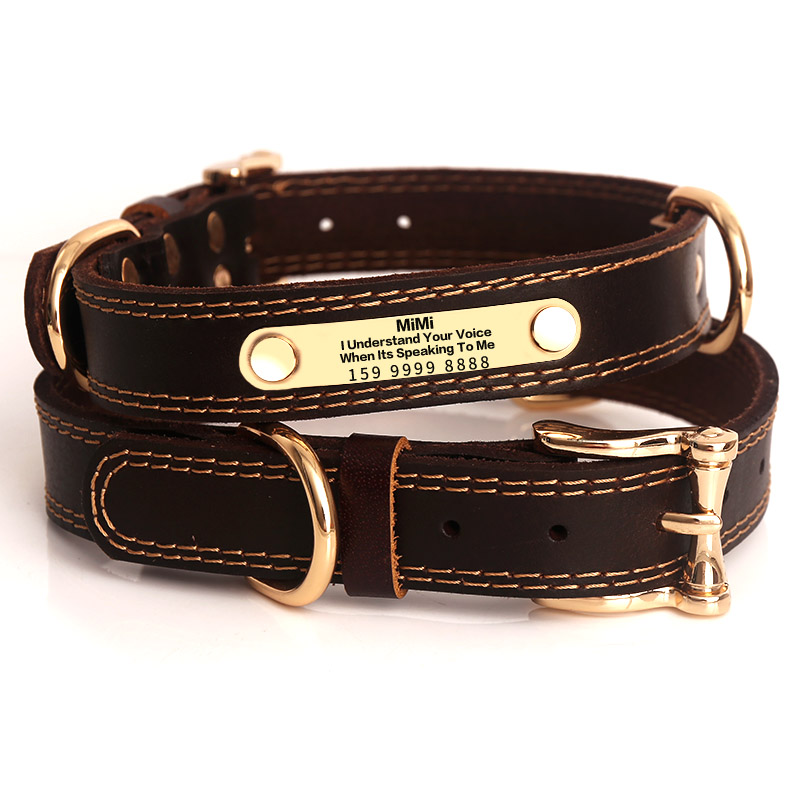 Genuine Leather Dog Collars with Engraved Nameplate