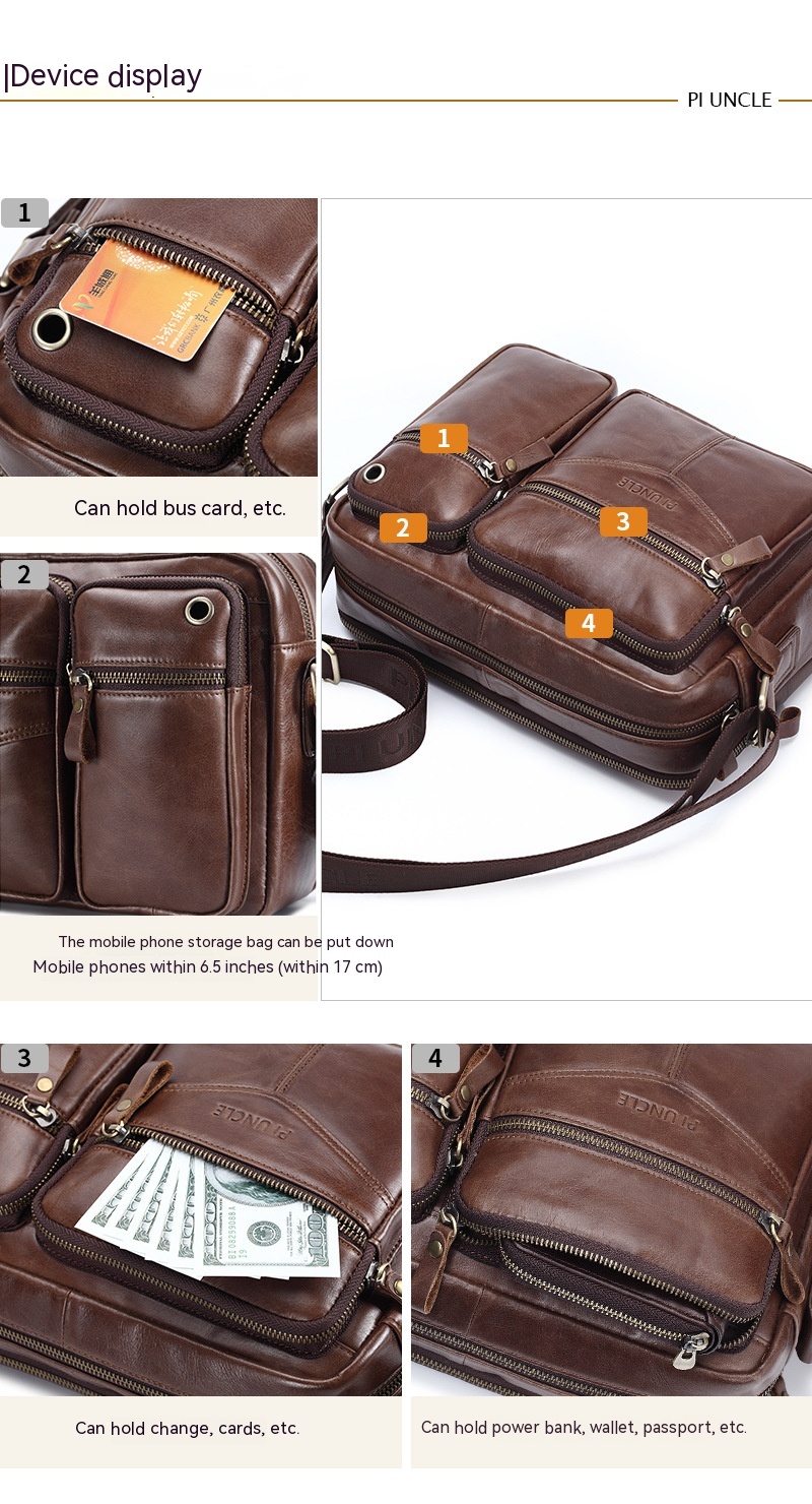 Genuine Leather Men's Shoulder Messenger Bag Large Capacity