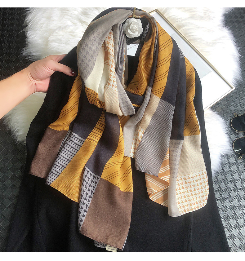 Geometric Cotton And Linen Scarf For Women Warm Shawl