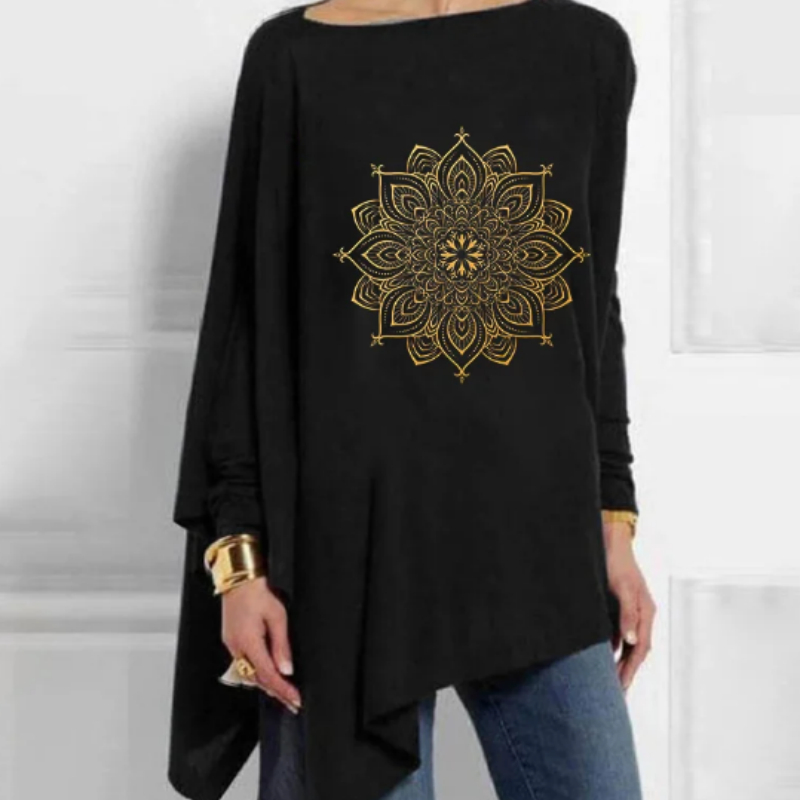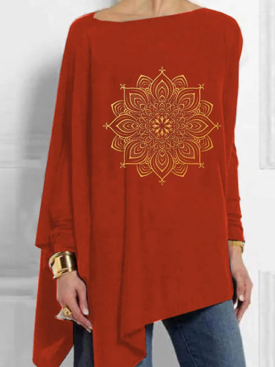 Geometric Flower Printed Casual Mid-Length Women's Tops