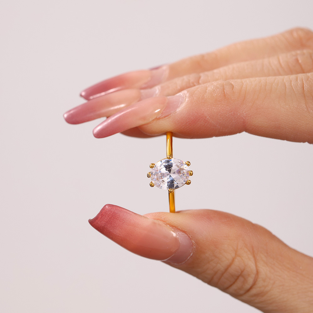 Color: A966-Golden Zircon Ring, A966-Steel Color Zircon Ring