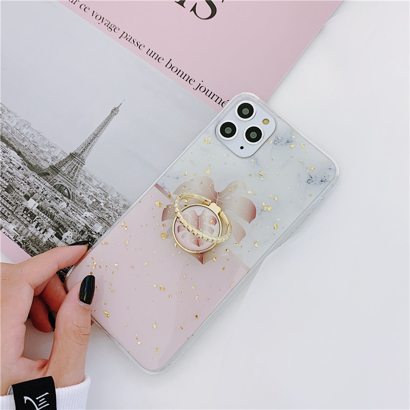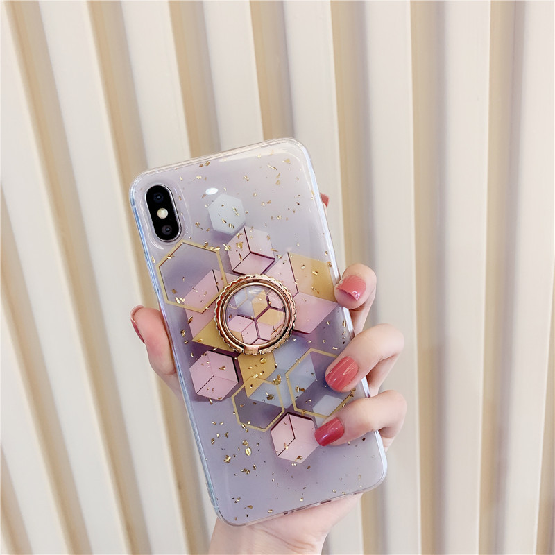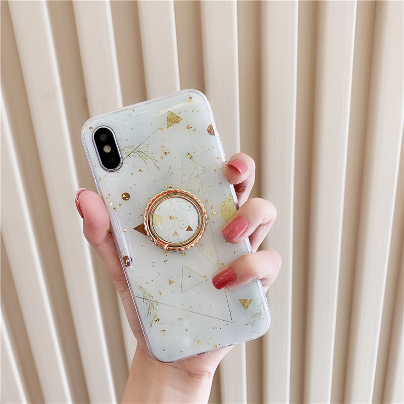 Gold powder marble geometric ring mobile phone stand