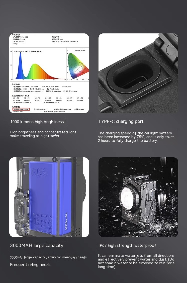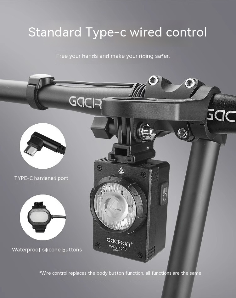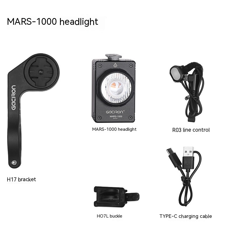 MARS-1000 front light+R03 wire control+H17 bracket+HO7L buckle+Type-c charging cable