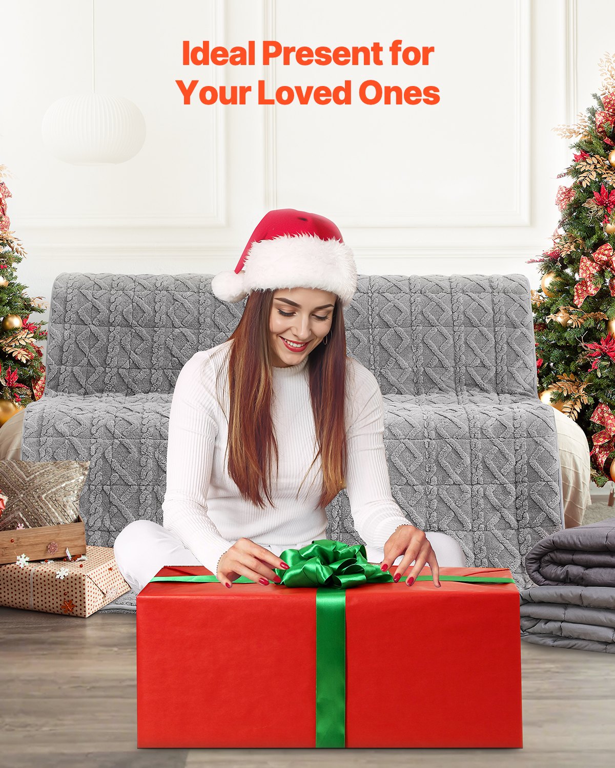 Stoffmaterial: Sherpa-Fleece + Jacquard-Fleece, Nettogewicht: 9,2 kg ±3 % (mit sämtlichem Zubehör), Farbe: Grau (gleiche Farbe auf beiden Seiten),Artikelmodellnummer: XSH005, Füllung: Glasperlen (Ø 0,08–1,2 mm), Produktabmessungen: 60 x 80 Zoll / 1524 x 2032 mm ±40 mm