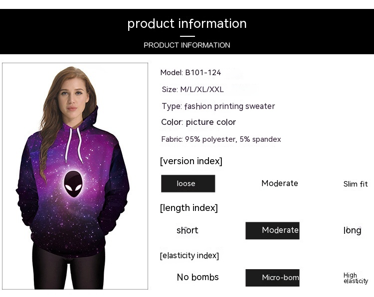 Ghost Starry Sky Digital Printing Fashion Large Sweatwear With Hat Sweater