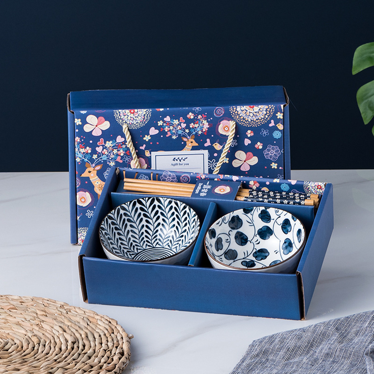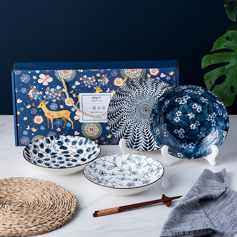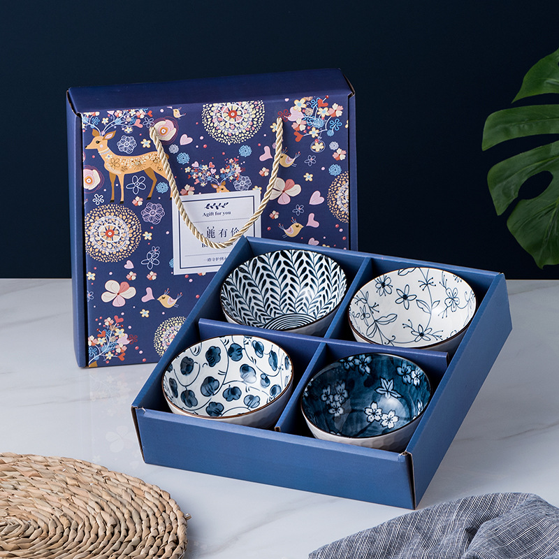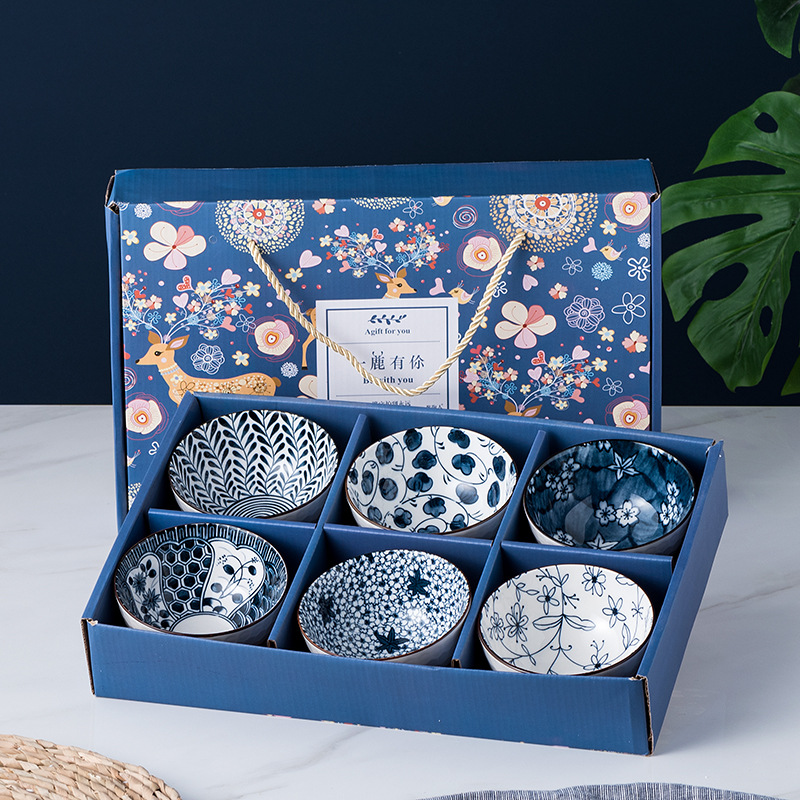 Gift Bowl Set Japanese Style Home Ceramic Tableware Creative Retro Exquisite Bowl Spoon Plate Gift