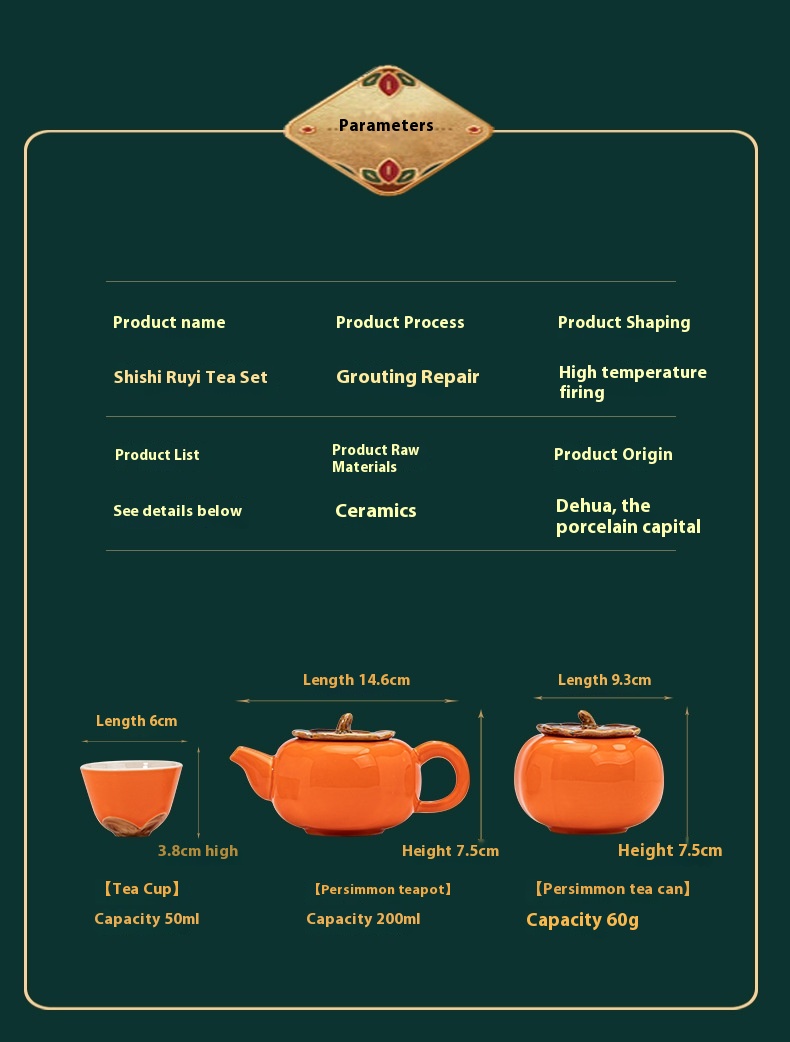 Color: Persimmon tea set (small sets), Persimmon tea set (large sets)