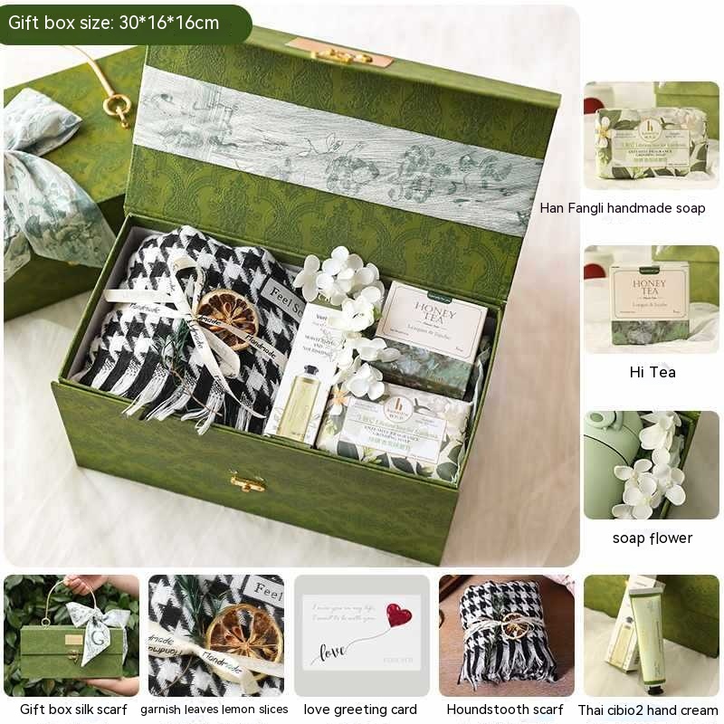 Style 5: matcha gift box houndstooth scarf handmade soap Heytea greeting card scarf,