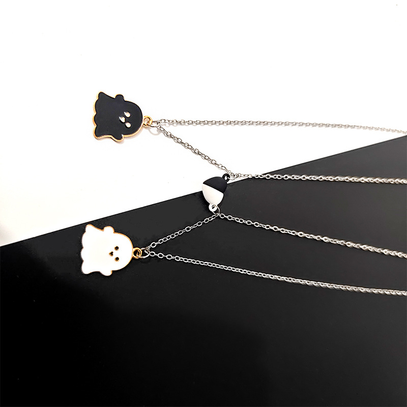 Color: Black white ghost couple necklace, blue pink ghost couple necklace, white ghost necklace, black ghost necklace, Blue Ghost necklace, pink ghost necklace