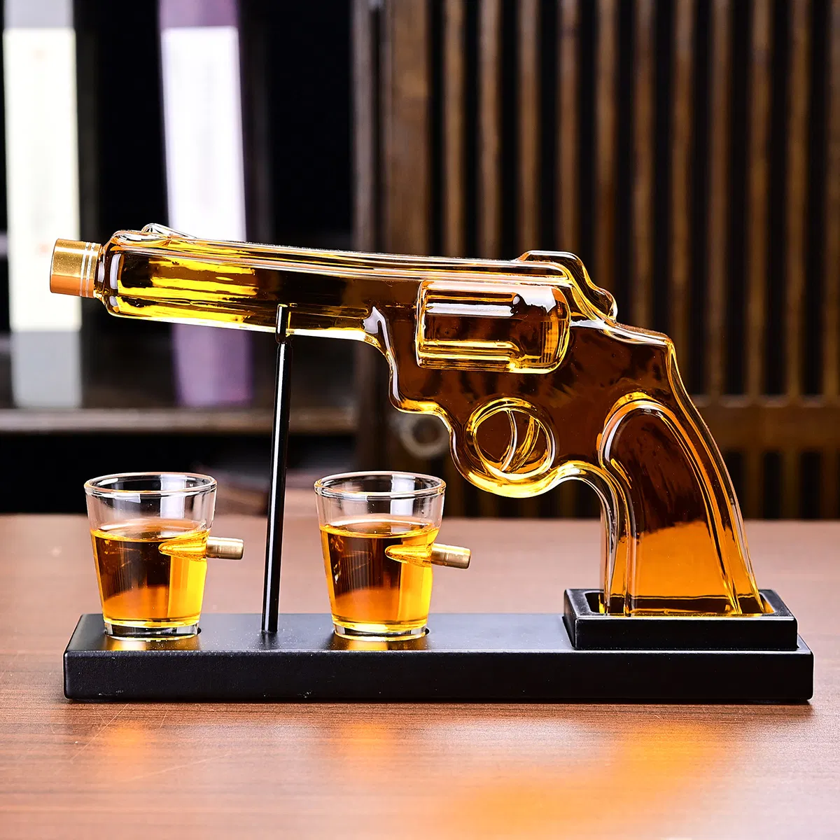 Gifts For Men Dad, 10 Oz Whiskey Gun Decanter Set + 2 Bullet Glasses - Unique Birthday Pistol Gift Ideas Daughter Son, Personalized Liquor Dispenser - Scotch Bourbon Vodka, Him, Brother Husband