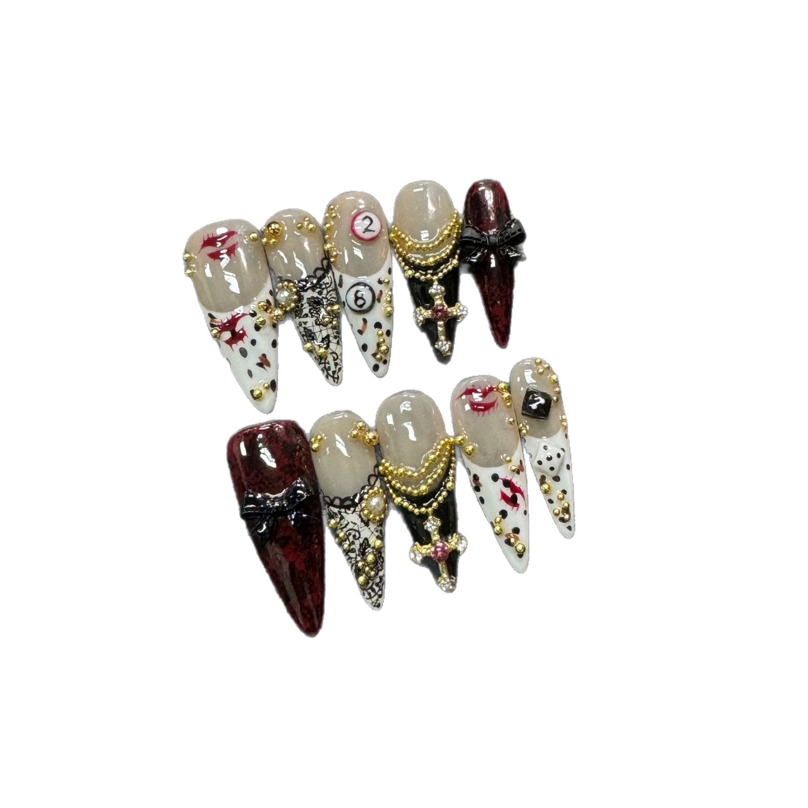 Gilded Gold-toned Long Stiletto Handcrafted Nails