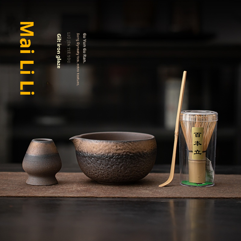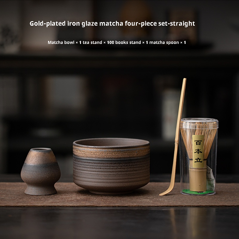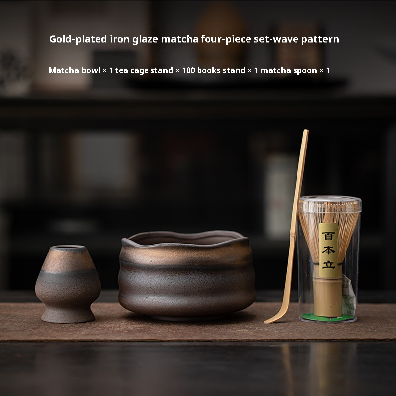 Color: gilding iron glaze-tea whisk utensils, gilding iron glaze-matcha bowl (round belly), gilding iron glaze-matcha bowl (mouth type), gilding iron glaze-matcha bowl (straight body), gilding iron glaze-matcha bowl (wave pattern), Kraft paper gift box, color box gift box, gilding iron glaze matcha four-piece set-round belly, gilding iron glaze matcha four-piece set-mouth type, gilding iron glaze matcha four-piece set-straight body, gilding iron glaze matcha four-piece set-wave pattern