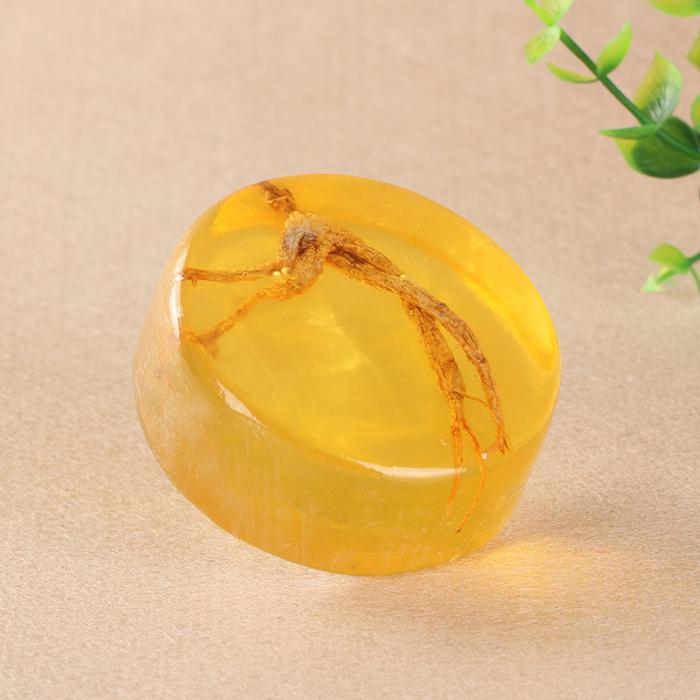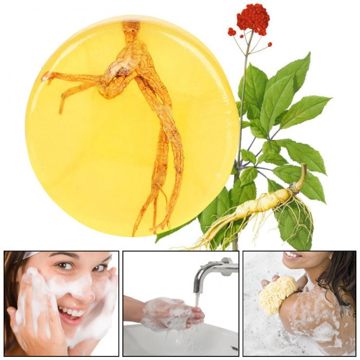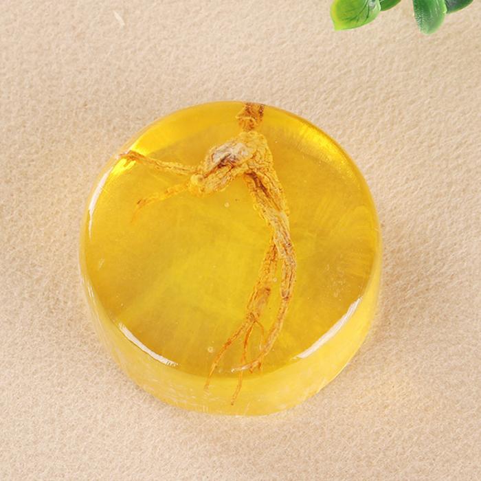 Features: Net: 100g Shelf life: 24 months Ingredients: water, olive oil (OLEA EUROPAEA) fruit oil, glycerin, avocado extract, wheat germ oil, green tea extract, tocopherol, ginseng essential oil Description: 1. This premium herbal soap creates a fine and smooth foam to flush the pores, cure acne and nourish the skin. 2. Ginseng roots and leaves are rich in vitamins, minerals and antioxidants, which are good for remedying skin conditions. 3. Natural skin detoxifier for clearing acne and toxins. 4. Luxurious yet mild lather to clean and nourish. 5. Saponin in ginseng gives vitality and elastin to skin cells. 6. Soothes rashes and heals blighted skin.