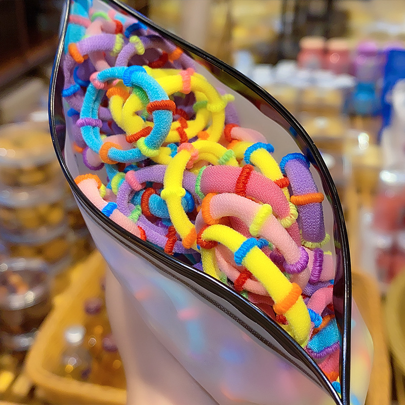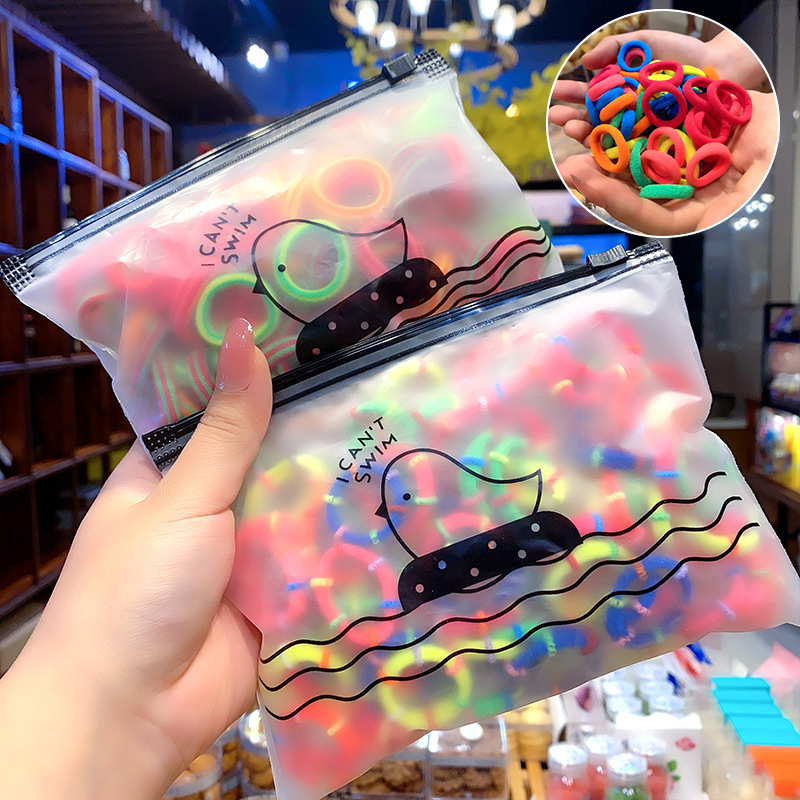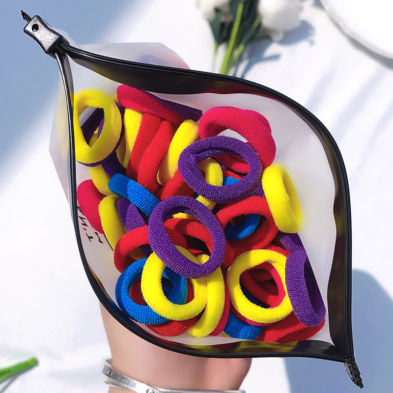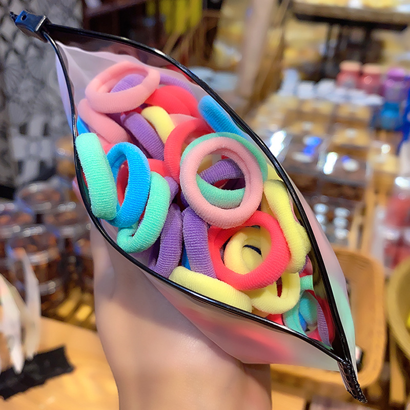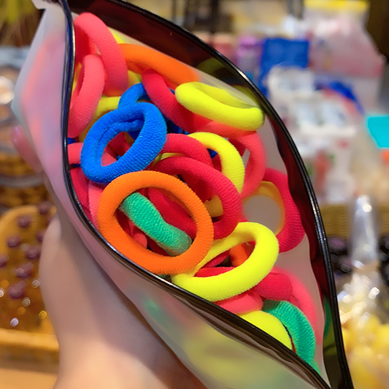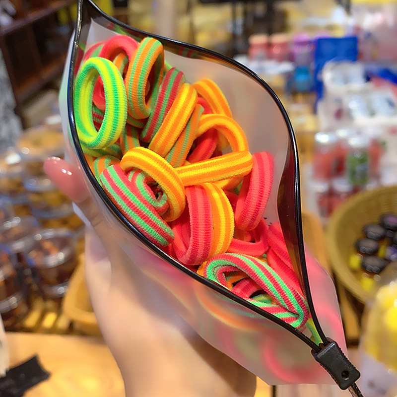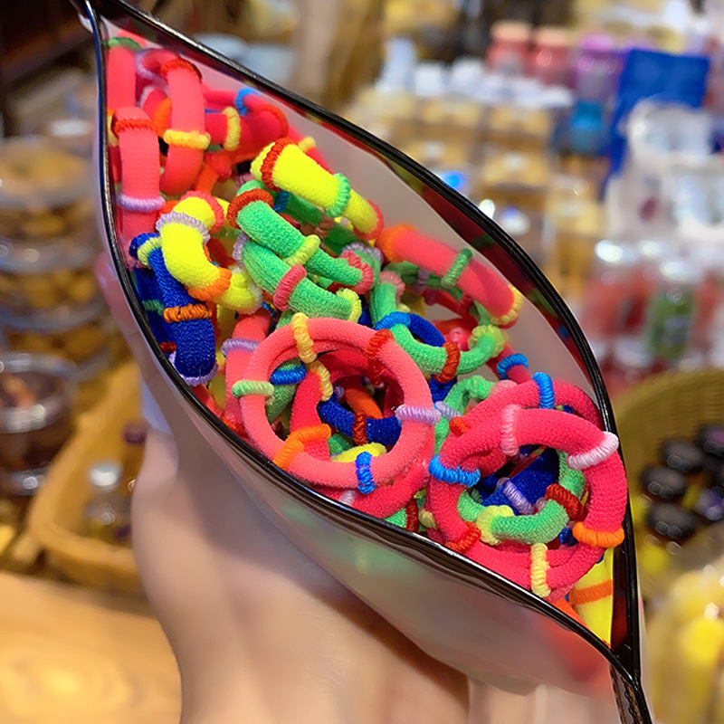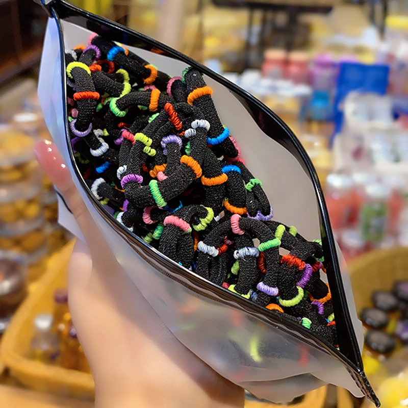Color: Fluorescent color small hair tie 100 A, bamboo section light color small hair tie 100 B, light color small hair tie 100 C, black small hair tie 100 D, bamboo section dark small hair tie 100 E, 100 small black hair ties with bamboo F, 100 small mixed color hair ties with stripes G, 100 small water color hair ties H