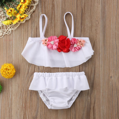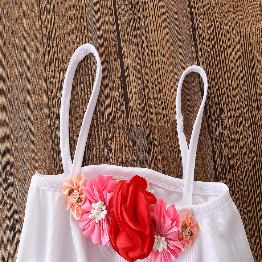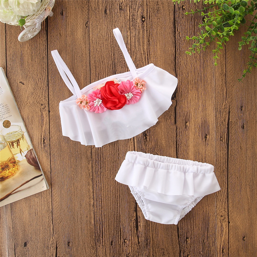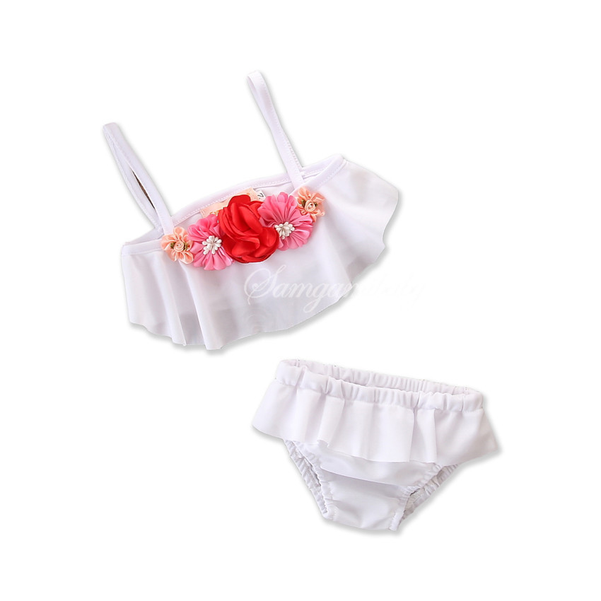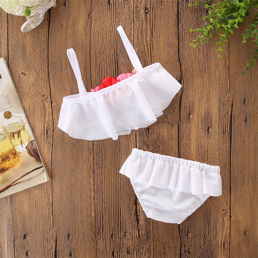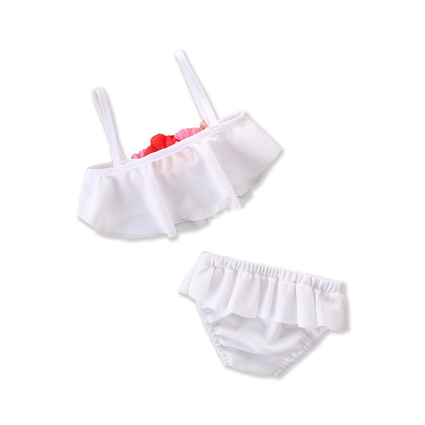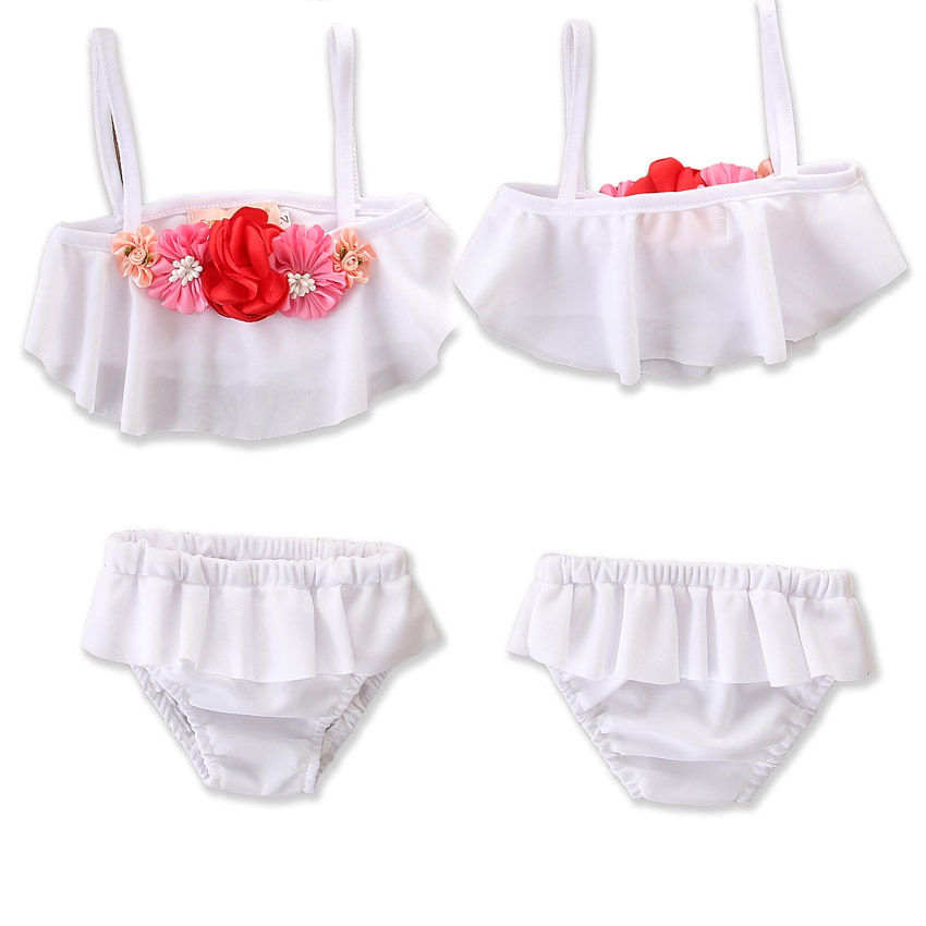 Style: Summer girl's small fresh white flower split swimsuit