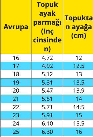 Size: 16, 17, 18, 19, 20, 22, 23, 24, 25, 26