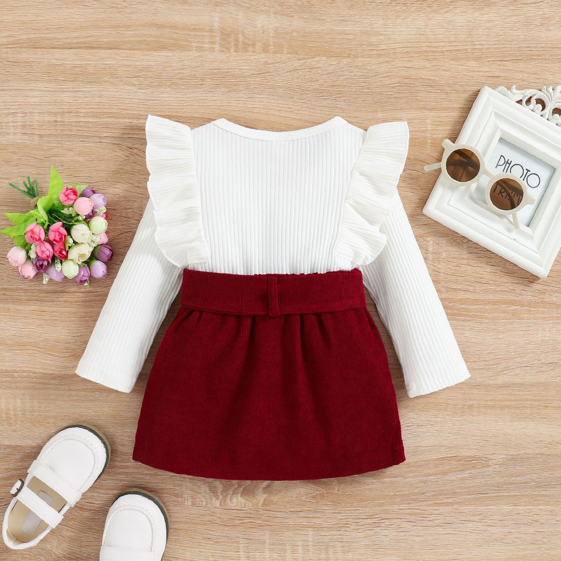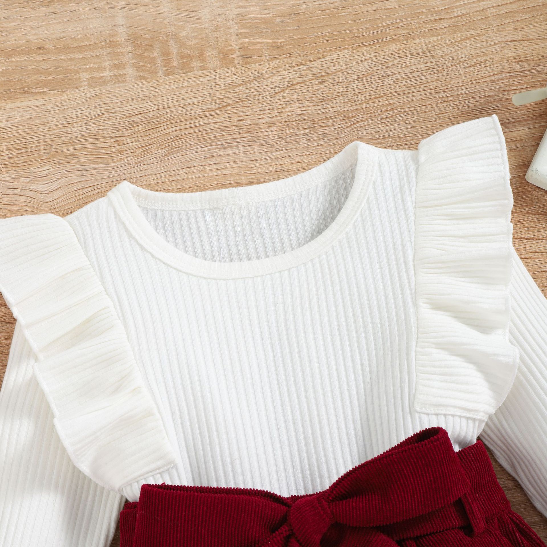 Girls Autumn And Winter Solid Color Lace Long-sleeved Corduroy Suit