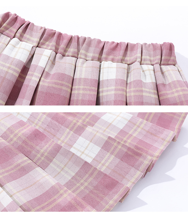 Color: light blue top, pink top, light blue suit, pink suit