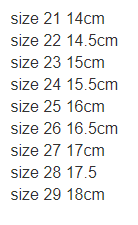 Size: 21, 22, 23, 24, 25, 26, 27, 28, 29, 30
