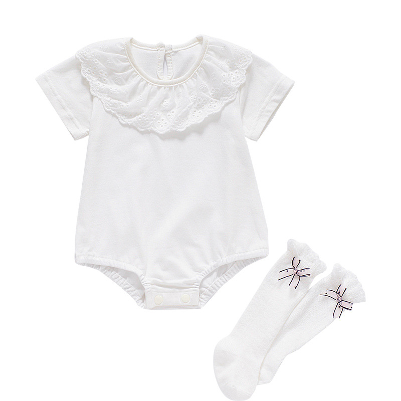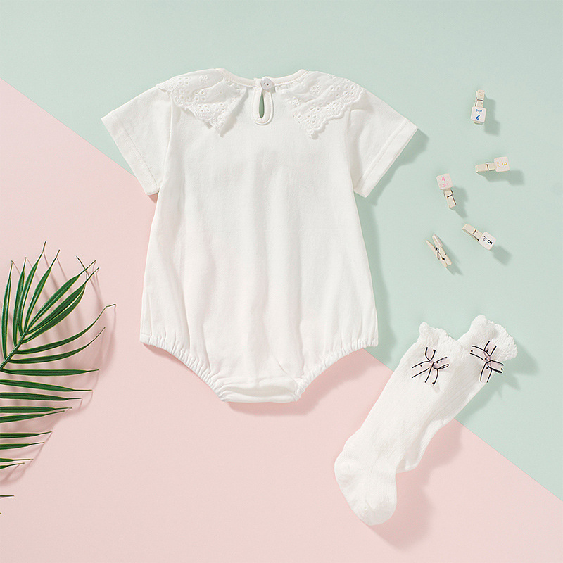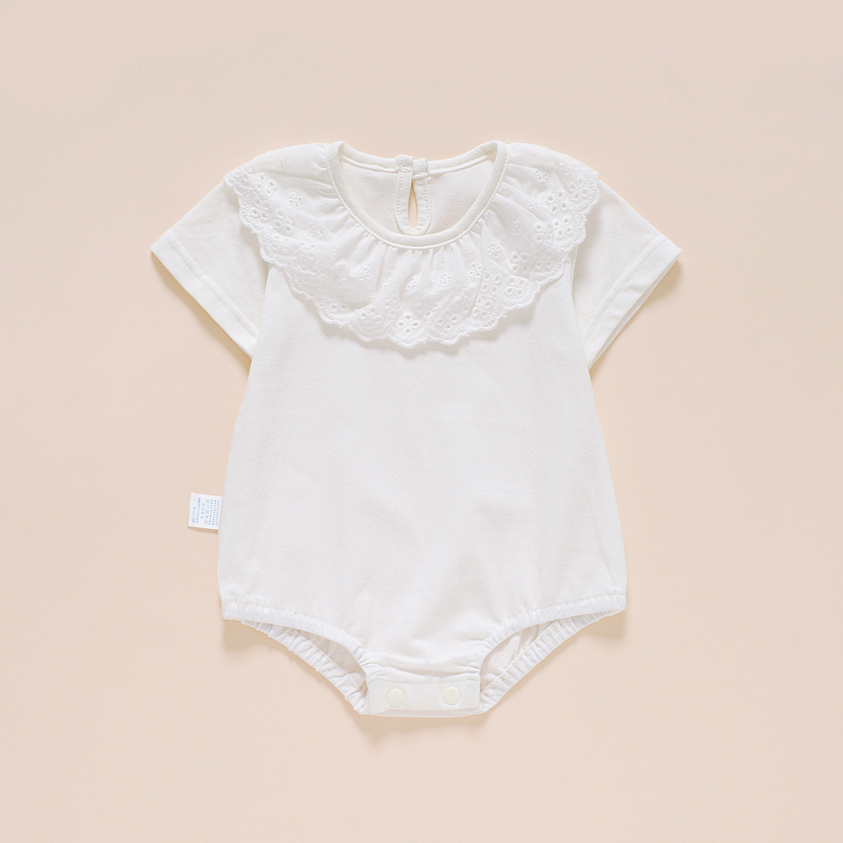 Girls' Baby Lace-Collar Bag Fart Romper Baby Cotton Short-Sleeved One-Piece Romper