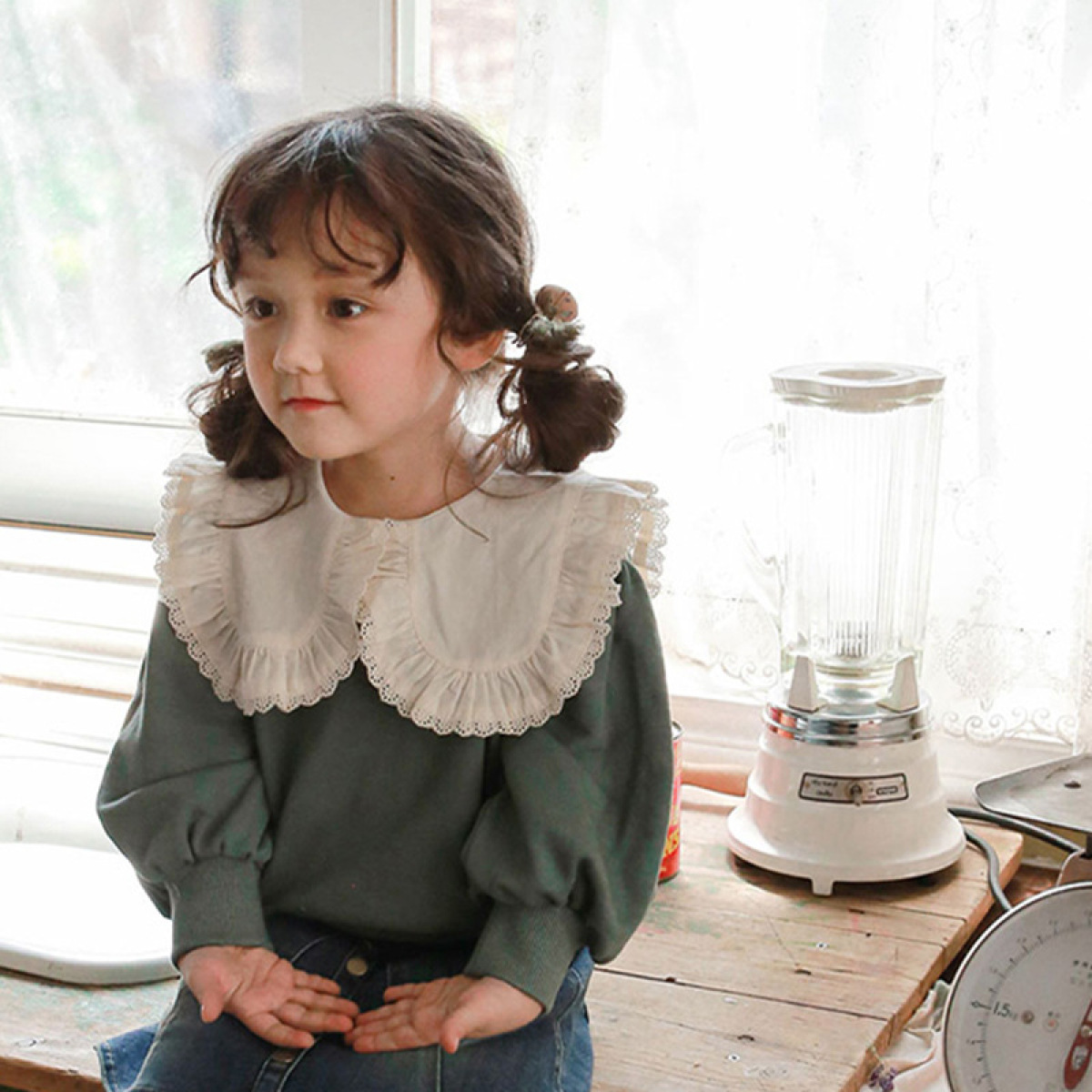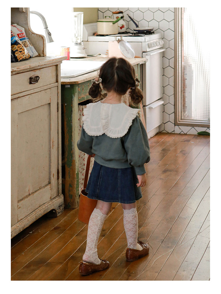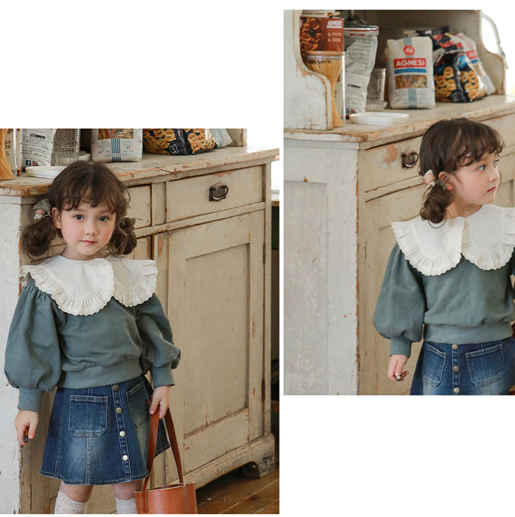 Color: large-collar green sweater, large-collar pink sweater, large-collar rice sweater