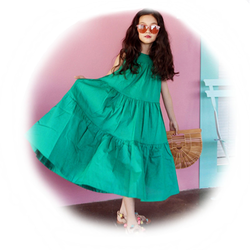 Girls' Big Swing Skirt Long Sleeveless Dress