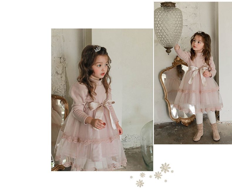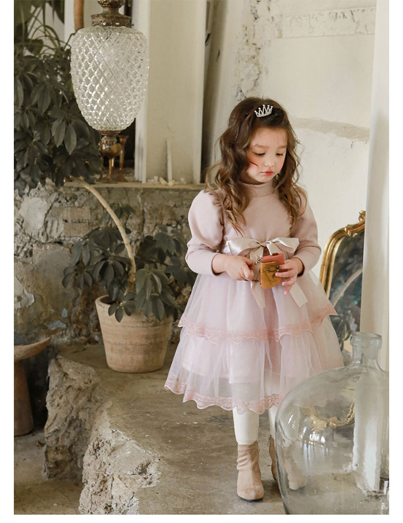 Girls Bow Thickened Plus Velvet Princess Dress