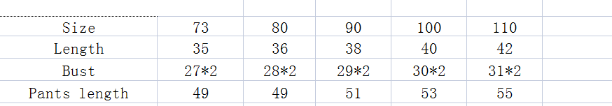 Size 73 is recommended for babies from 5 to 10 months old, size 80 is recommended for babies around 1 year old, size 90 is recommended for babies around 1 to 1.5 years old, size 100 is recommended for babies around 2 to 3 years old, and size 110 is recommended for babies around 3 to 4 years old.