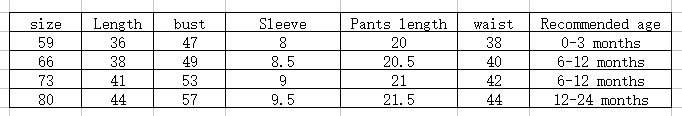 Reference height: 59 (0-3 months) 66 (3-6 months) 73 (6-12 months) 80 (12-24 months)