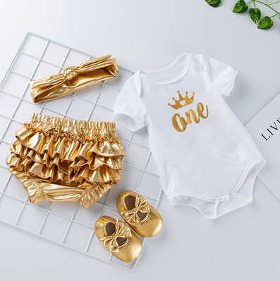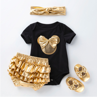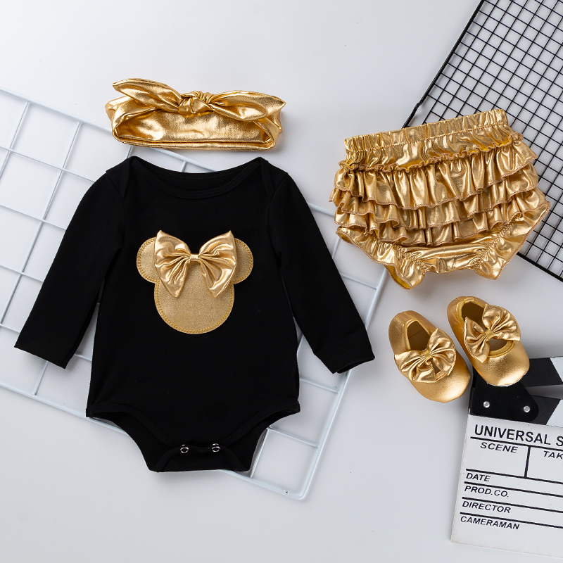 E: Black color cotton cartoon one+PP pants four-piece combination