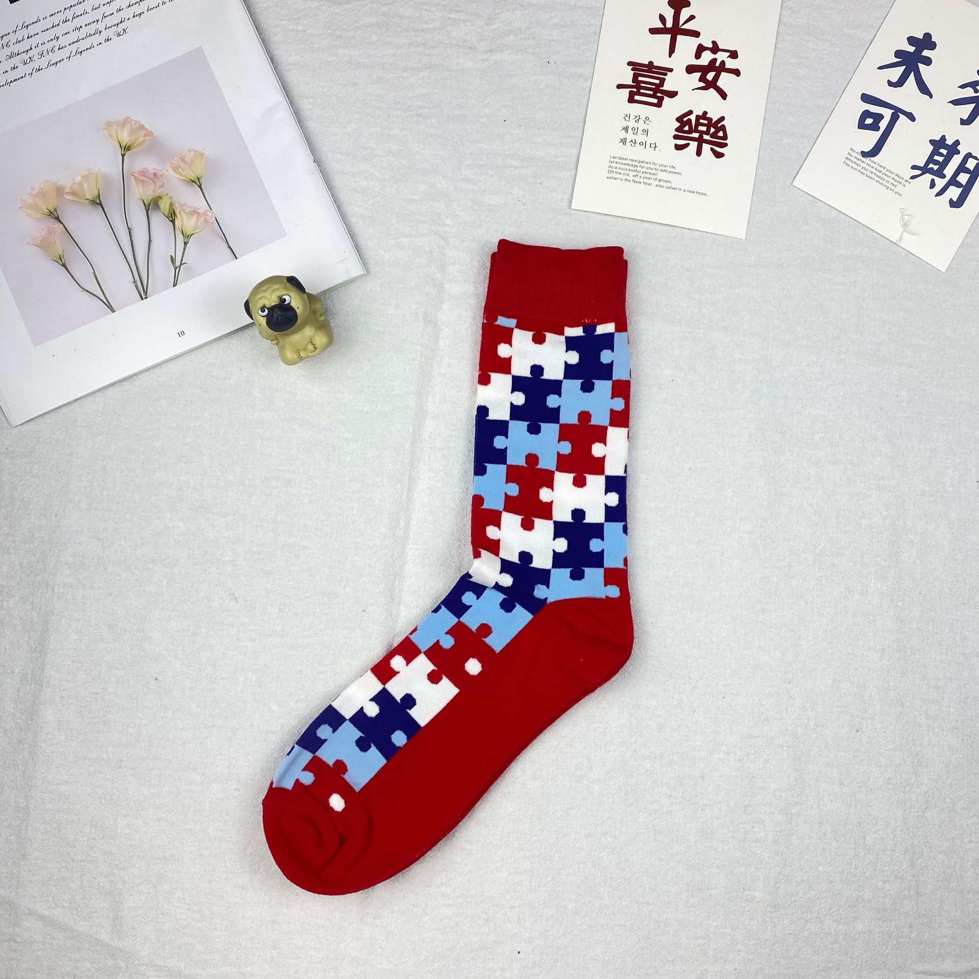 Color: rainbow wave pattern, yellow little white rabbit, red, yellow and blue flowers, navy blue puzzle, red puzzle,