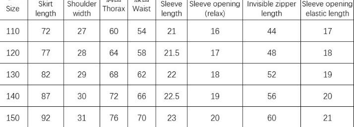 Size: 110cm, 120cm, 130cm, 140cm, 150cm
