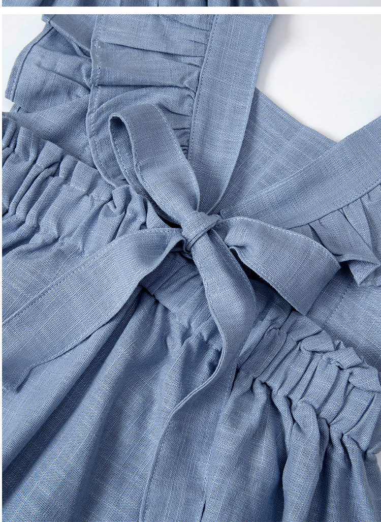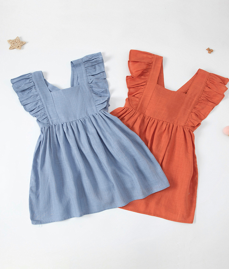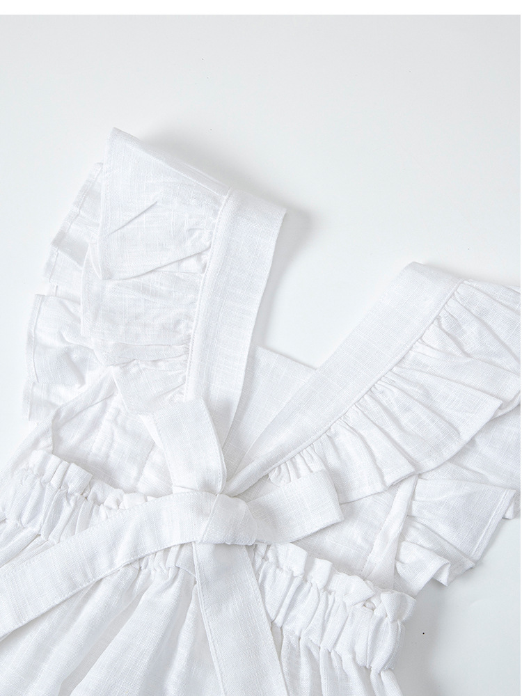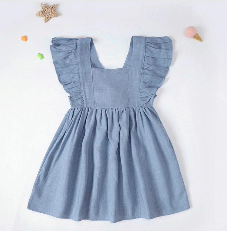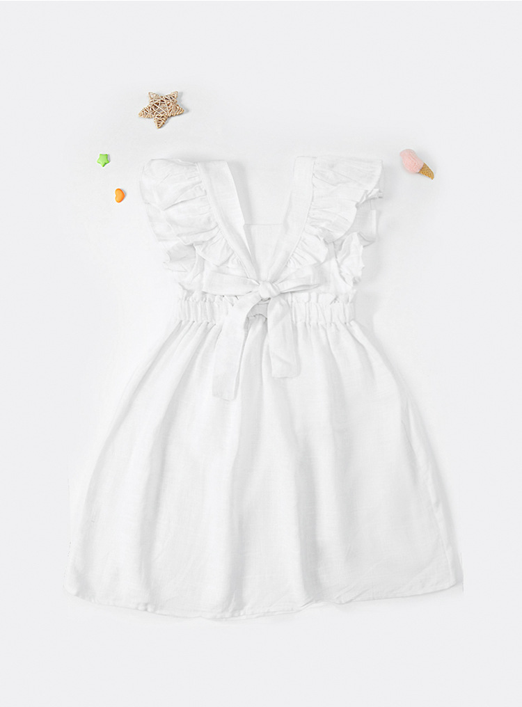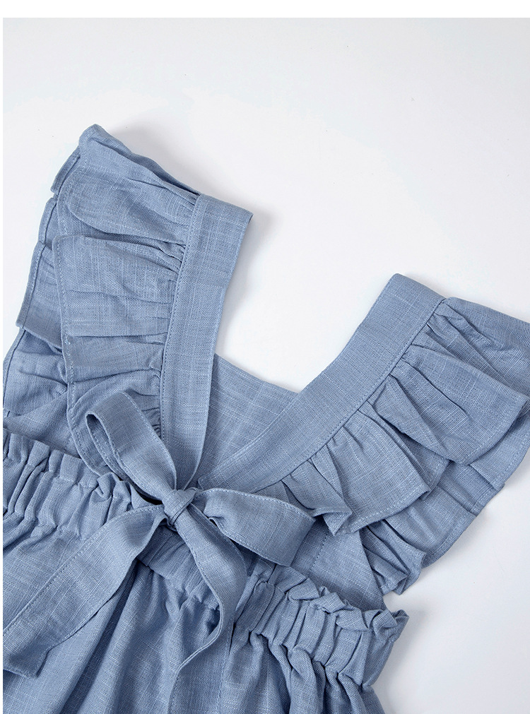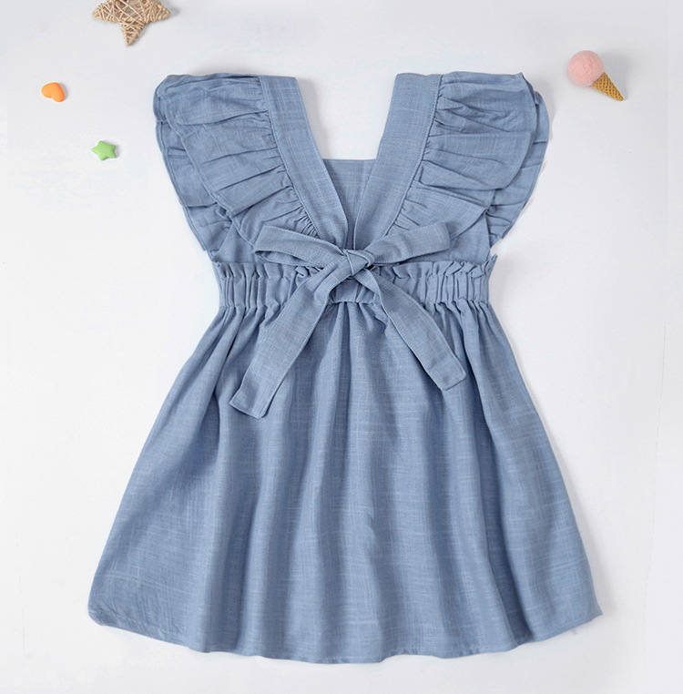 Girls' Cotton And Linen Bowknot Wooden Ear Embroidery Dress