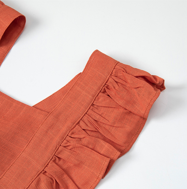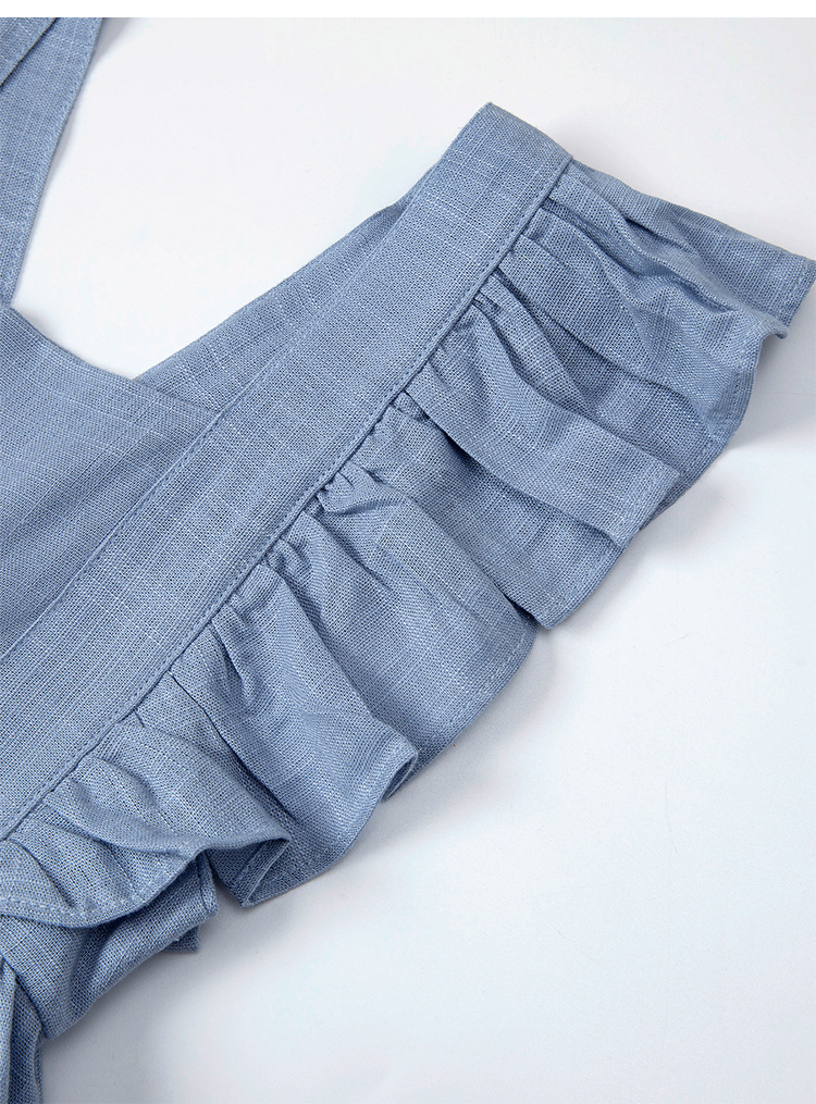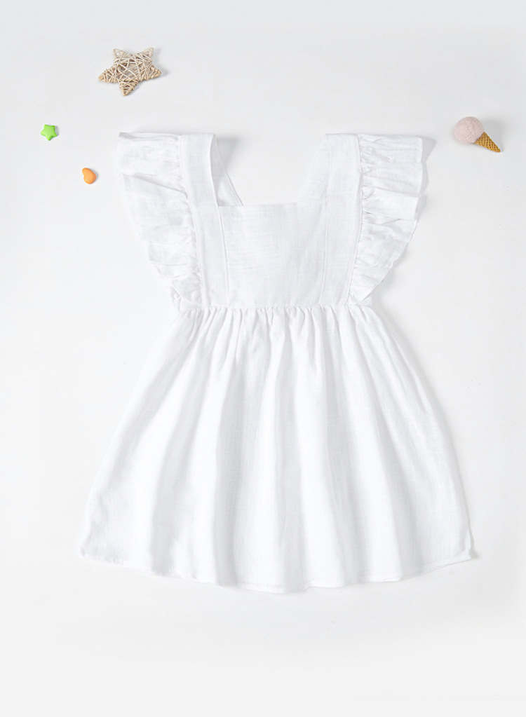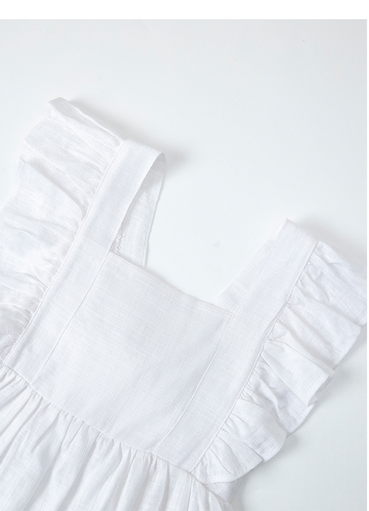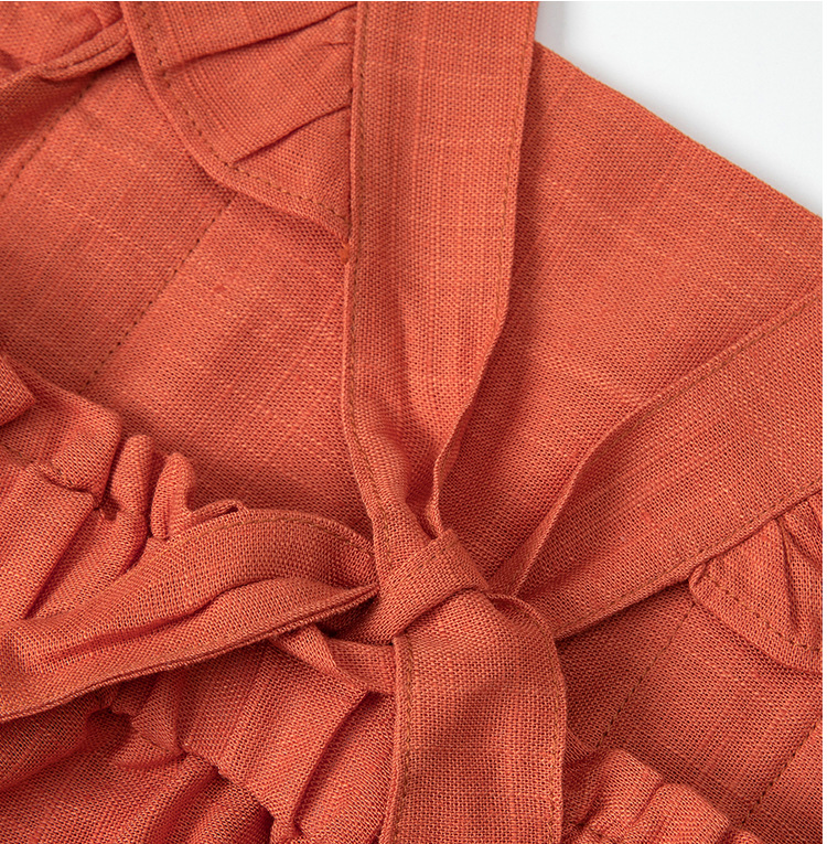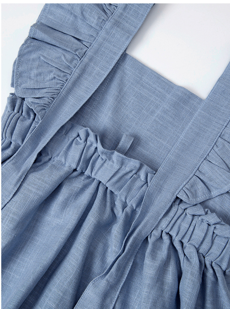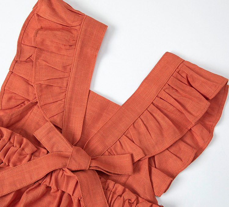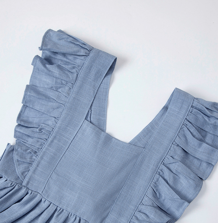 Girls' Cotton And Linen Bowknot Wooden Ear Embroidery Dress