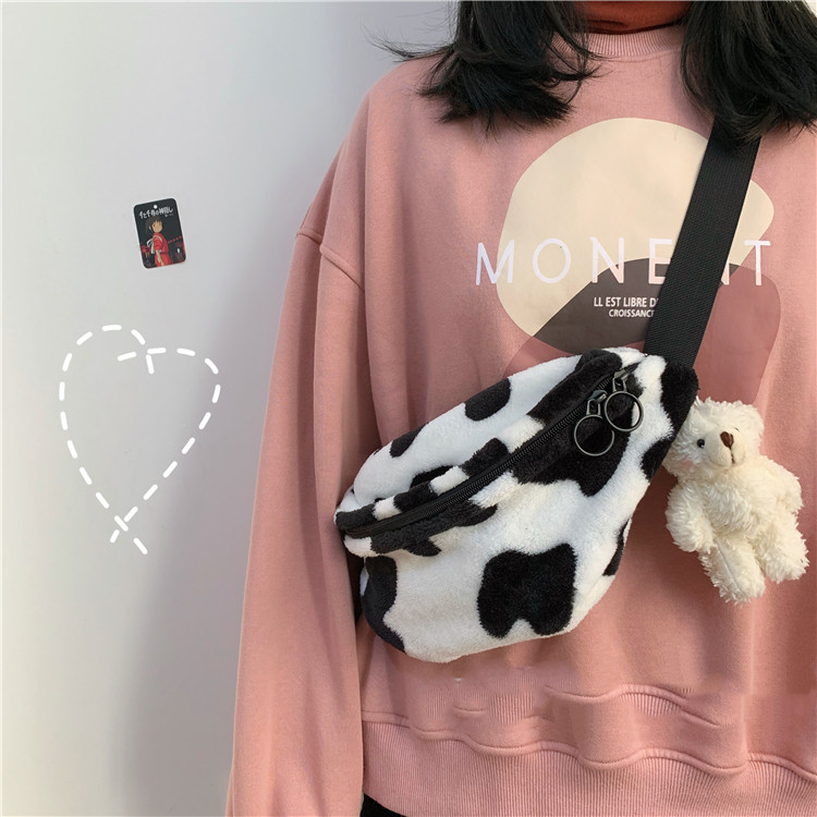 Chest bag size: 30X17cm is lamb's wool with a zipper and an open pocket