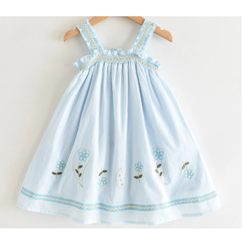 The new summer 2020 flower embroidered girl cute doll skirt with suspendersSize 90, 100, 110, 120, 130, 140cm,