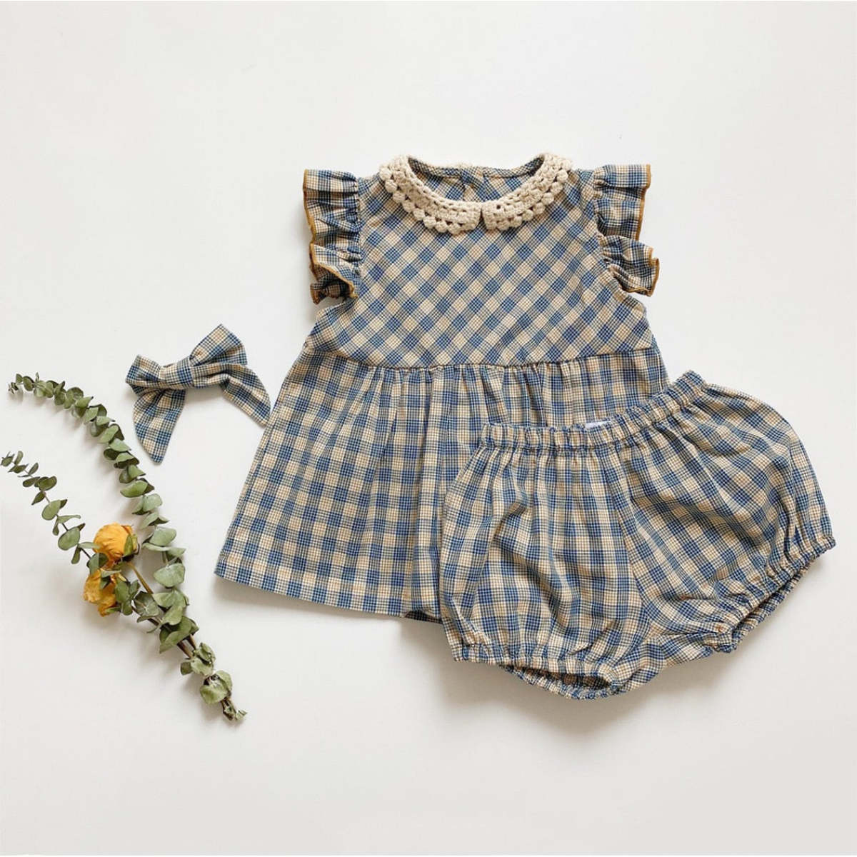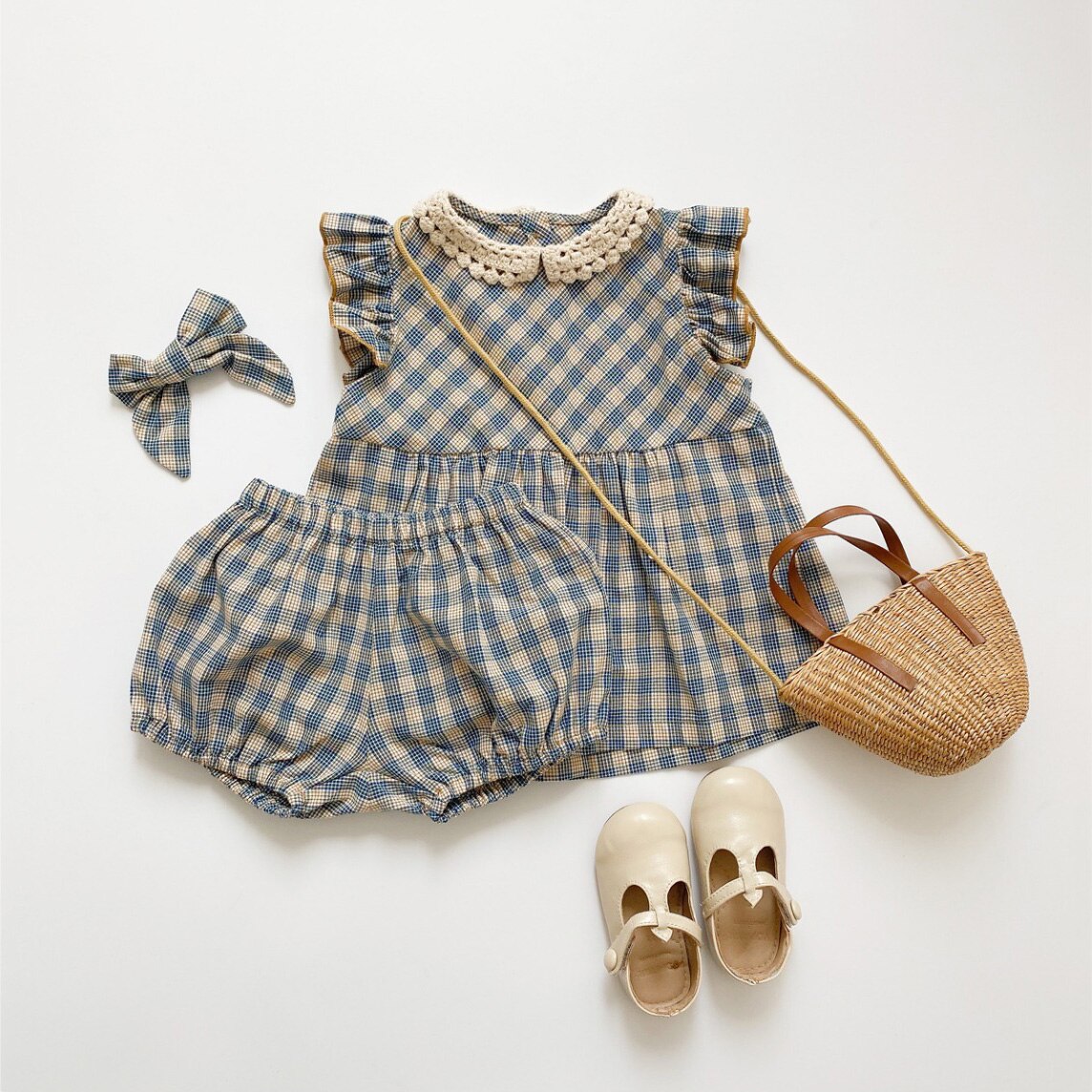 Color: BeBe Custom Grey Blue Checker - Set