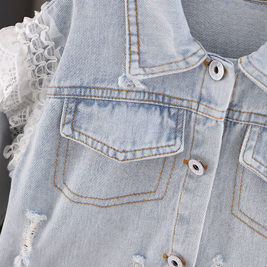 Color: LOVE denim jacket, branch style white, Dumbo denim jacket blue, denim jacket double pocket blue, denim jacket embroidered blue, cherry denim jacket white