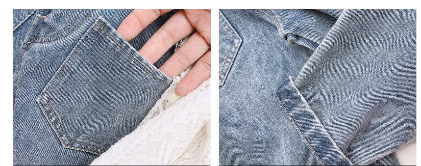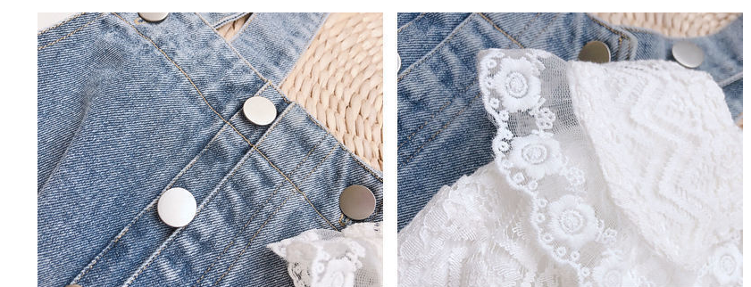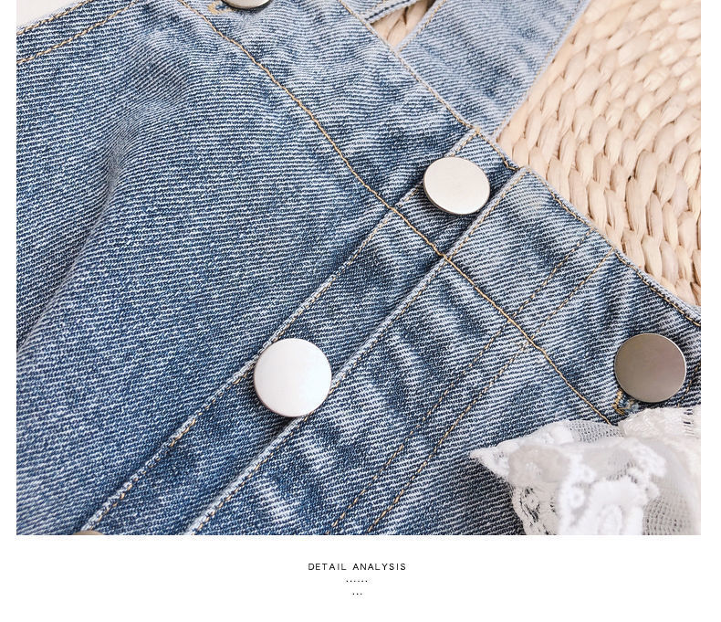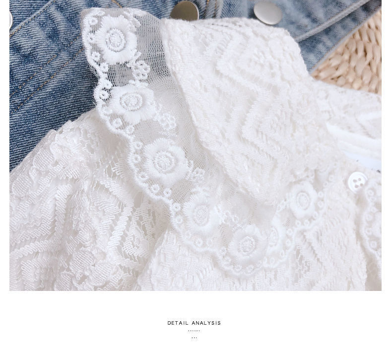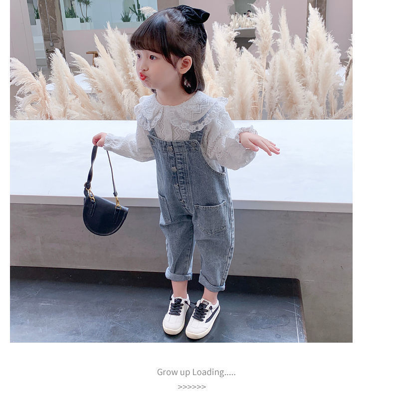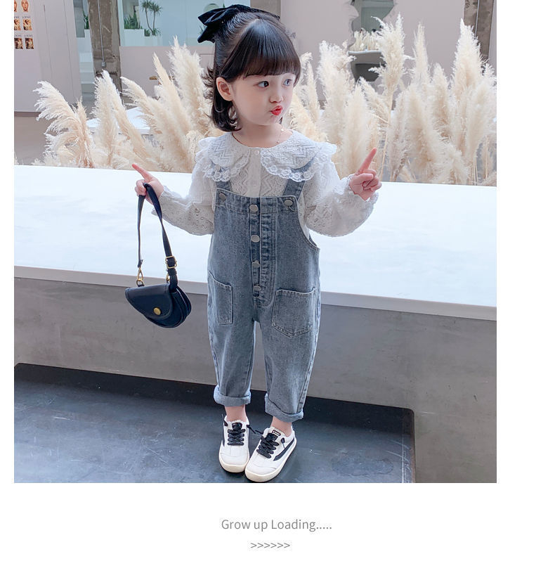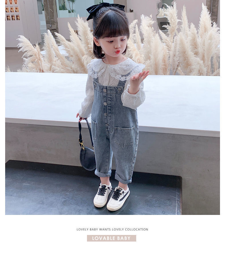 Color: white lace shirt, one-piece denim overalls, lace shirt + denim overalls