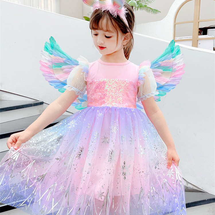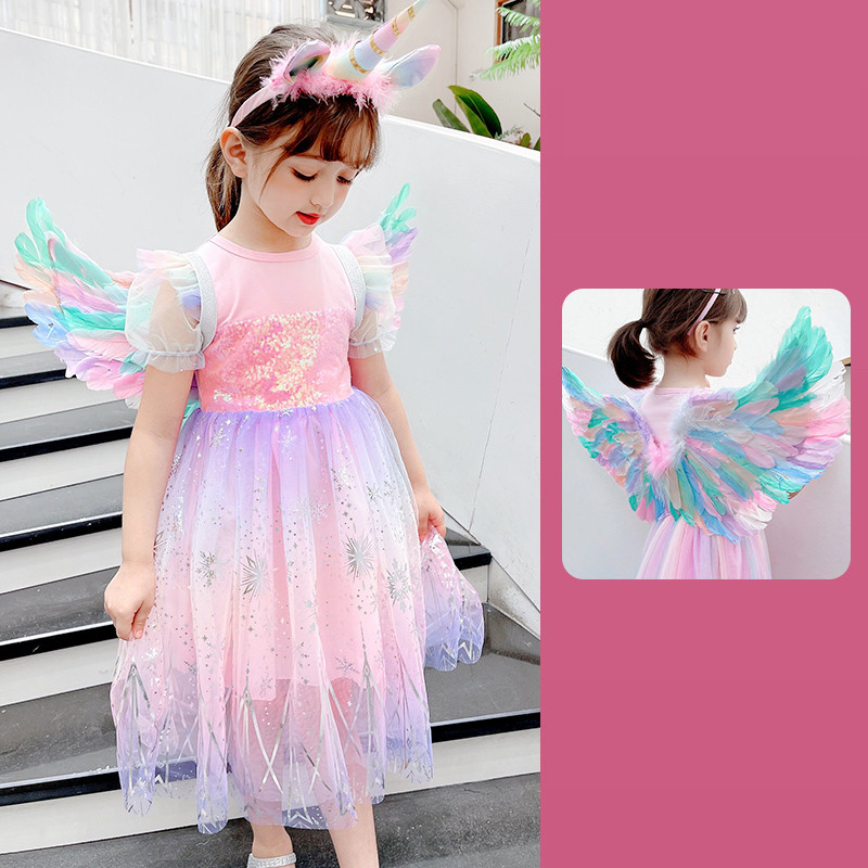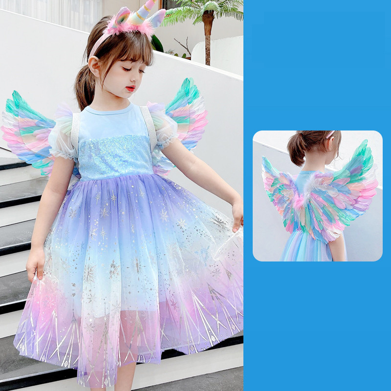 Girls Dress Colorful Angel With Wings