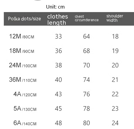 Size: 12M(80cm) 18M(90cm) 24M(100cm) Model Fitting 36M(110cm) 4A(120cm) 5A(130cm) 6A(140cm)